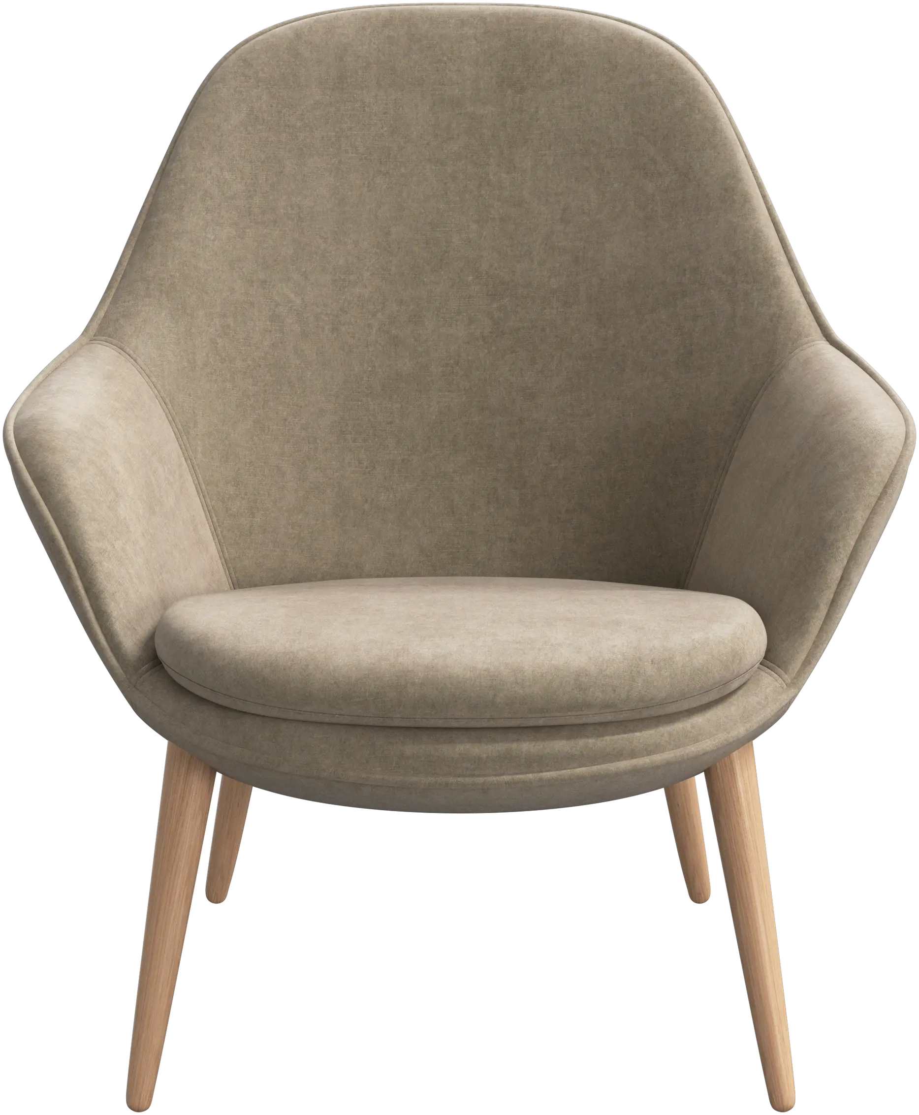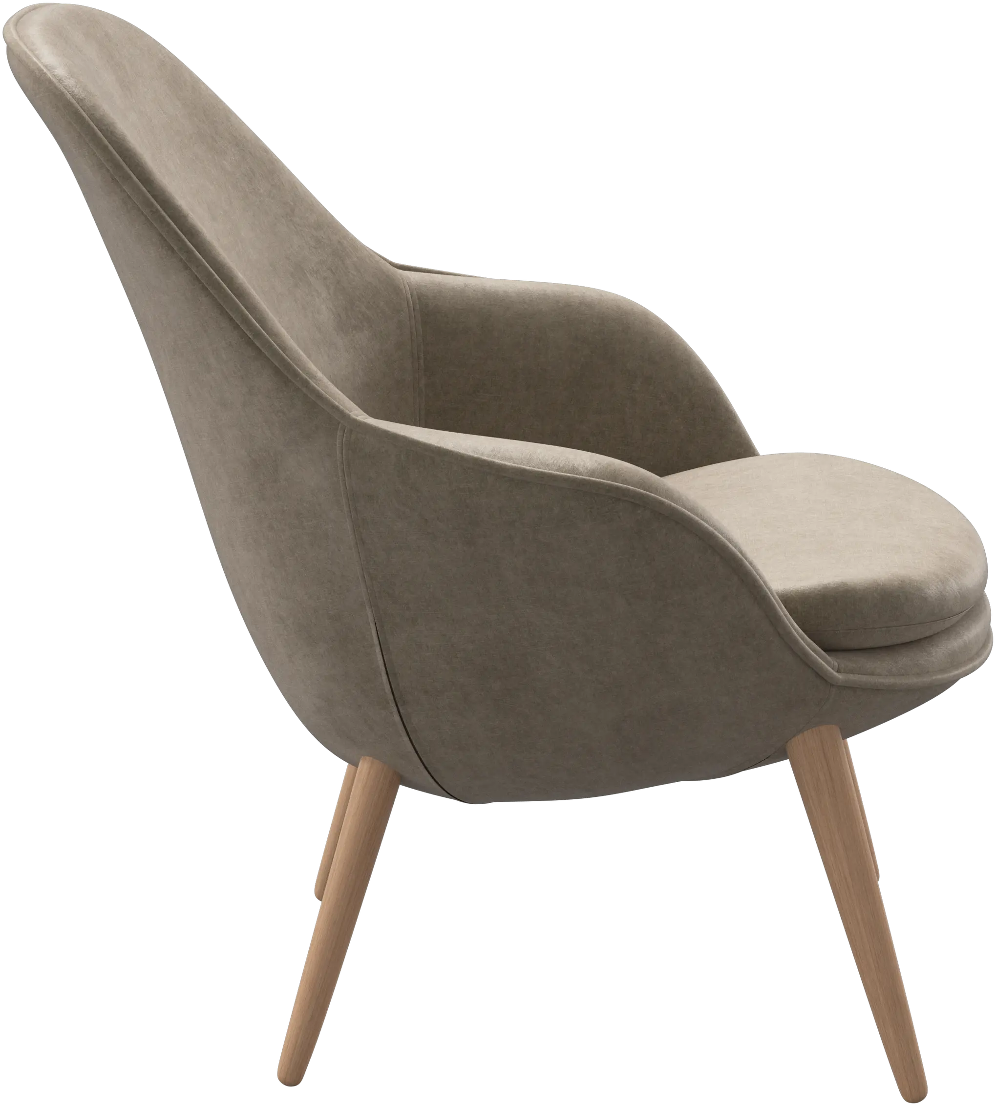 The armchair comes with a tall leg design that emphasises the soft and elegant expression or with a swivel base that allows you to turn the chair in different directions without getting up.