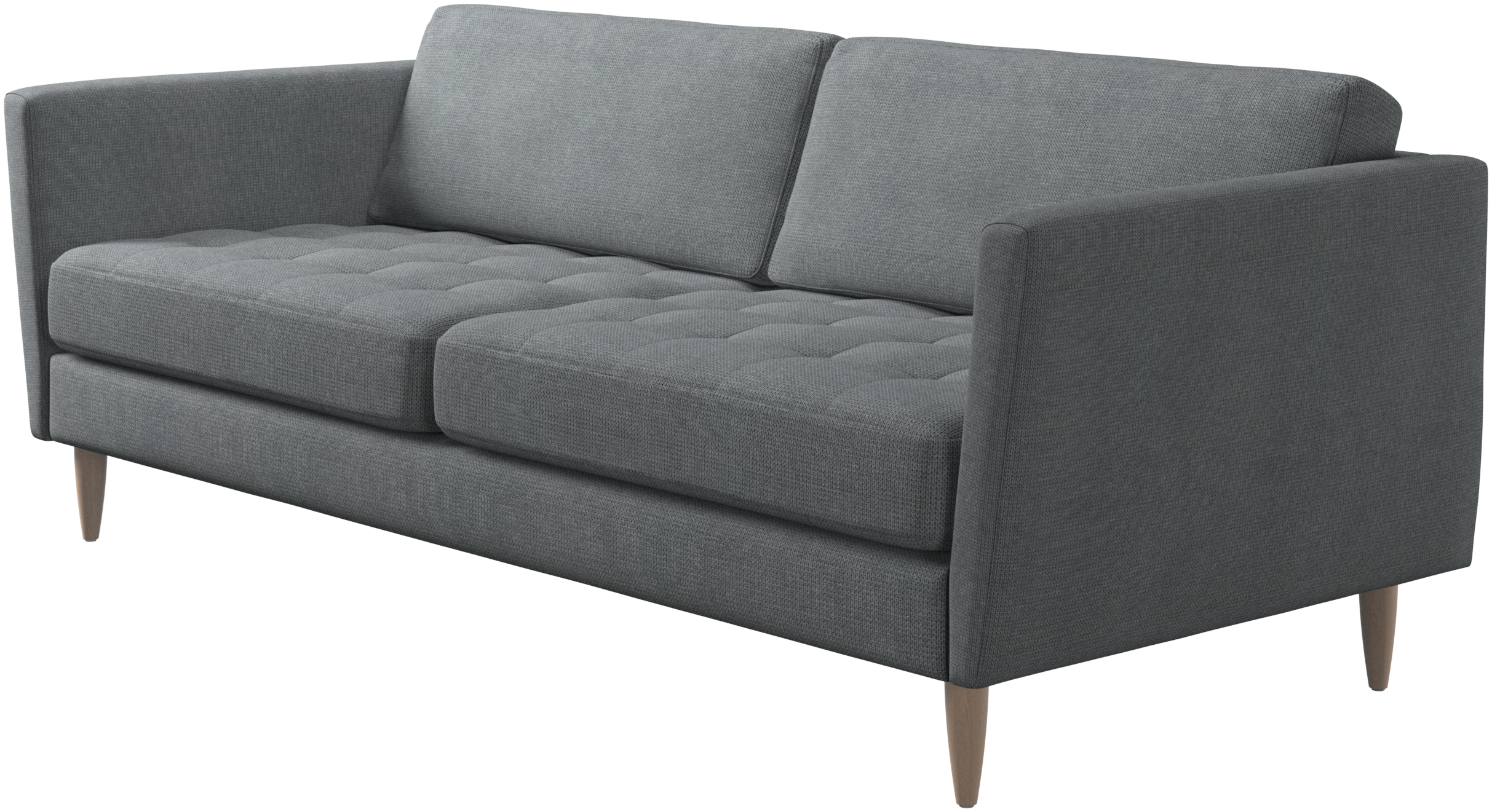 A light look and slim proportions make the Osaka sofa perfect for small homes, while a subtle feminine look and a touch of 60s design ensure that the Osaka sofa still packs a style punch. The beautiful tufted seats add visual softness and bring a classic look to your living room. Inclined armrests give the sofa a modern, unique look and open it up to the rest of the room. While keeping the 2 seater look, this comfortable 2.5 seater sofa has wider seats for extra comfort.