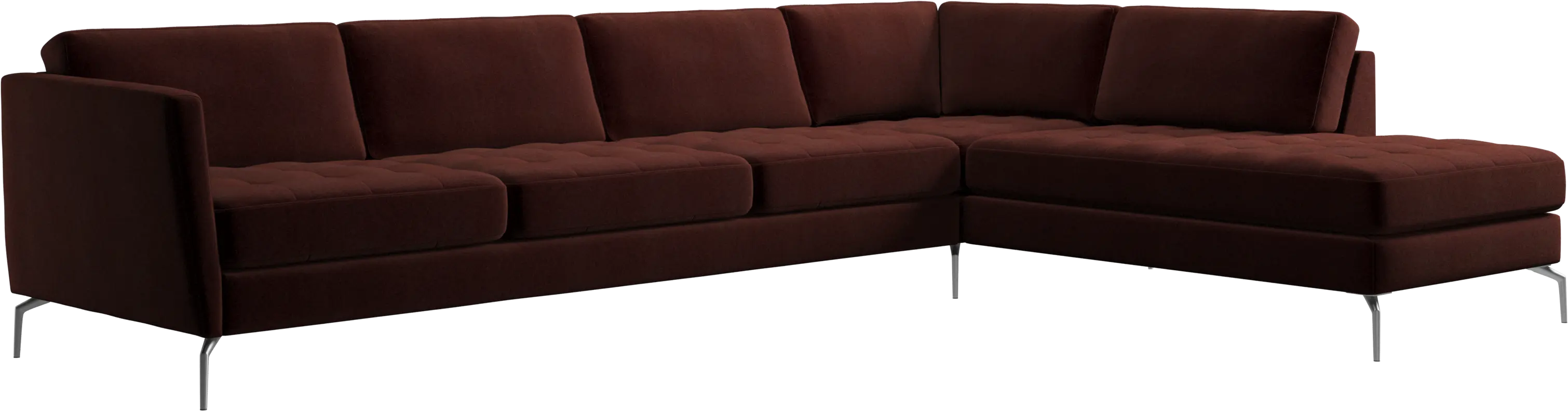 A light look and slim proportions make the Osaka sofa perfect for small homes, while a subtle feminine look and a touch of 60s design ensure that the Osaka sofa still packs a style punch. The beautiful tufted seats add visual softness and bring a classic look to your living room. Inclined armrests give the sofa a modern, unique look and open it up to the rest of the room. With plenty of room for the entire family this corner sofa will be the hero of your living room. The open end will create a dynamic, welcoming atmosphere - a true blessing for the integrated areas of open-plan living. Put your feet up, stretch out or use it as an extra seat – you won’t be sorry for choosing this comfortable chaise longue sofa.
