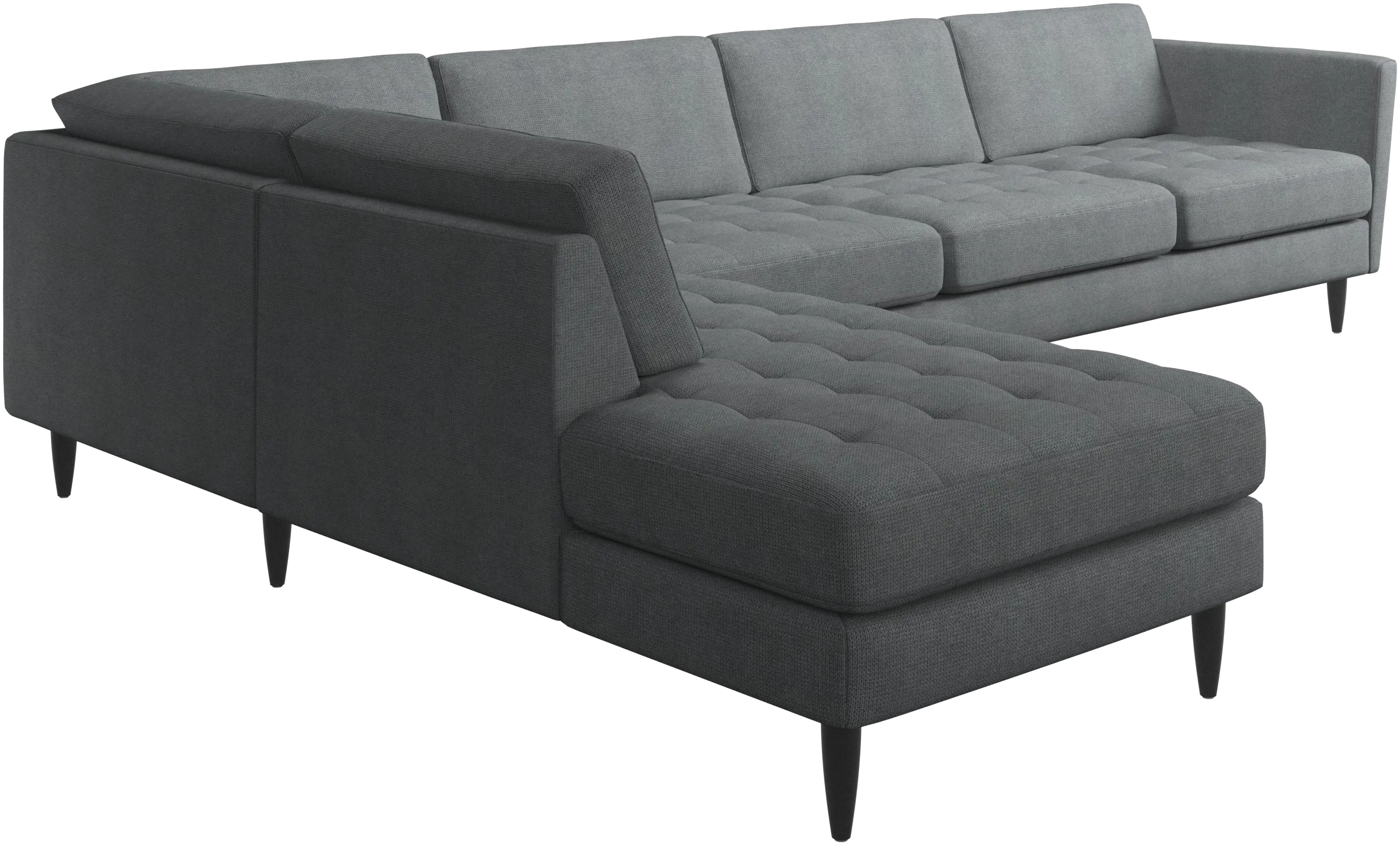A light look and slim proportions make the Osaka sofa perfect for small homes, while a subtle feminine look and a touch of 60s design ensure that the Osaka sofa still packs a style punch. The beautiful tufted seats add visual softness and bring a classic look to your living room. Inclined armrests give the sofa a modern, unique look and open it up to the rest of the room. With plenty of room for the entire family this corner sofa will be the hero of your living room. The open end will create a dynamic, welcoming atmosphere - a true blessing for the integrated areas of open-plan living. Put your feet up, stretch out or use it as an extra seat – you won’t be sorry for choosing this comfortable chaise longue sofa.