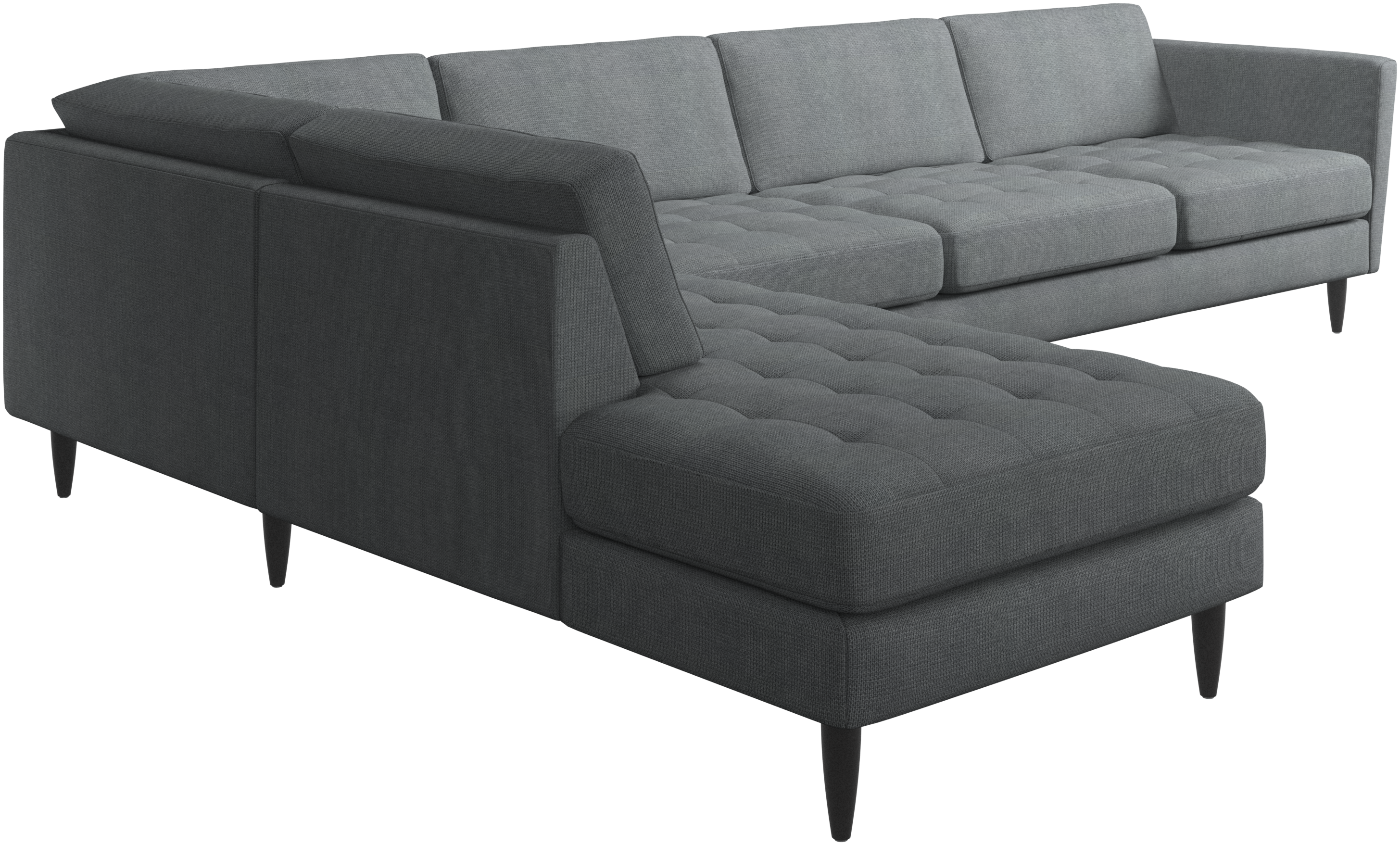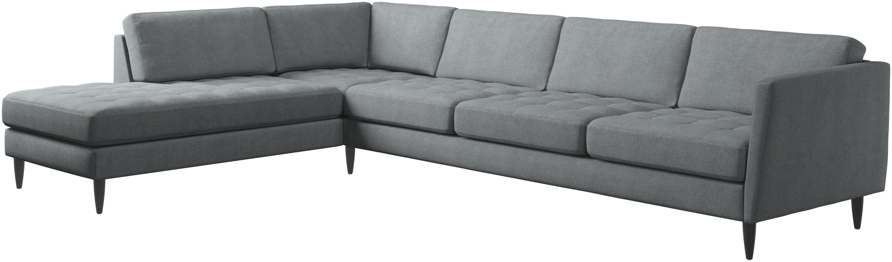 A light look and slim proportions make the Osaka sofa perfect for small homes, while a subtle feminine look and a touch of 60s design ensure that the Osaka sofa still packs a style punch. The beautiful tufted seats add visual softness and bring a classic look to your living room. Inclined armrests give the sofa a modern, unique look and open it up to the rest of the room. With plenty of room for the entire family this corner sofa will be the hero of your living room. The open end will create a dynamic, welcoming atmosphere - a true blessing for the integrated areas of open-plan living. Put your feet up, stretch out or use it as an extra seat – you won’t be sorry for choosing this comfortable chaise longue sofa.