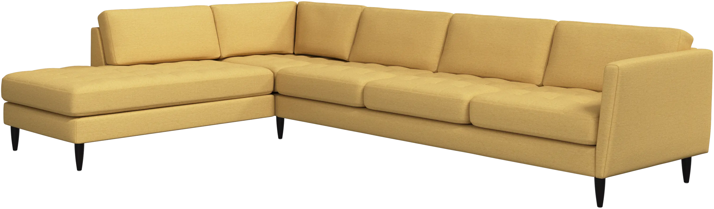 A light look and slim proportions make the Osaka sofa perfect for small homes, while a subtle feminine look and a touch of 60s design ensure that the Osaka sofa still packs a style punch. The beautiful tufted seats add visual softness and bring a classic look to your living room. Inclined armrests give the sofa a modern, unique look and open it up to the rest of the room. With plenty of room for the entire family this corner sofa will be the hero of your living room. The open end will create a dynamic, welcoming atmosphere - a true blessing for the integrated areas of open-plan living. Put your feet up, stretch out or use it as an extra seat – you won’t be sorry for choosing this comfortable chaise longue sofa.