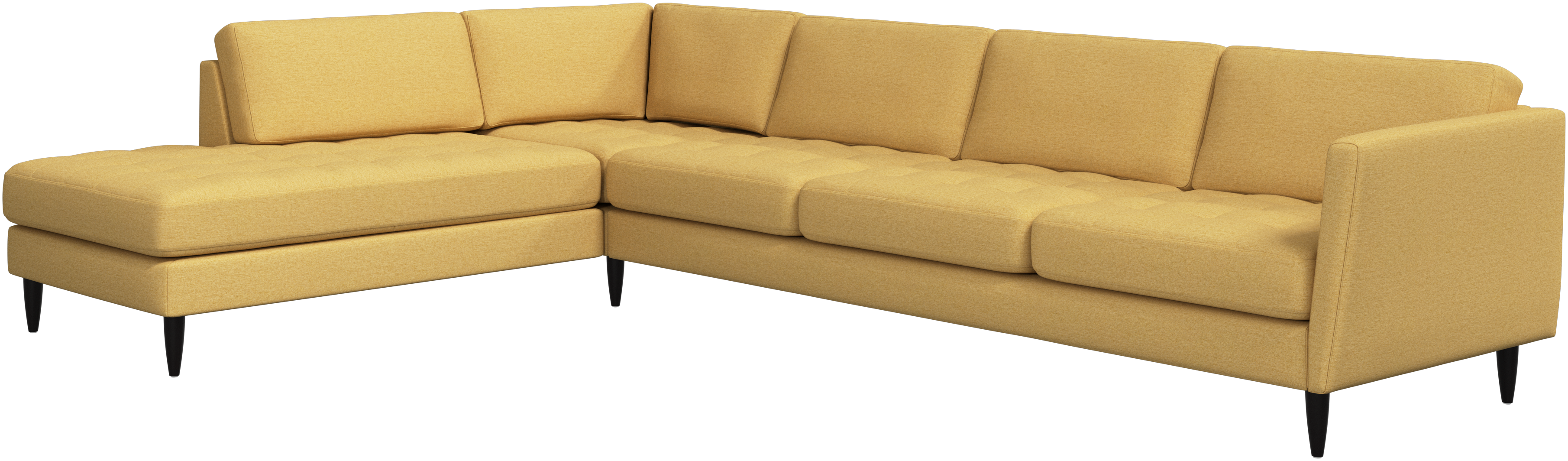 A light look and slim proportions make the Osaka sofa perfect for small homes, while a subtle feminine look and a touch of 60s design ensure that the Osaka sofa still packs a style punch. The beautiful tufted seats add visual softness and bring a classic look to your living room. Inclined armrests give the sofa a modern, unique look and open it up to the rest of the room. With plenty of room for the entire family this corner sofa will be the hero of your living room. The open end will create a dynamic, welcoming atmosphere - a true blessing for the integrated areas of open-plan living. Put your feet up, stretch out or use it as an extra seat – you won’t be sorry for choosing this comfortable chaise longue sofa.