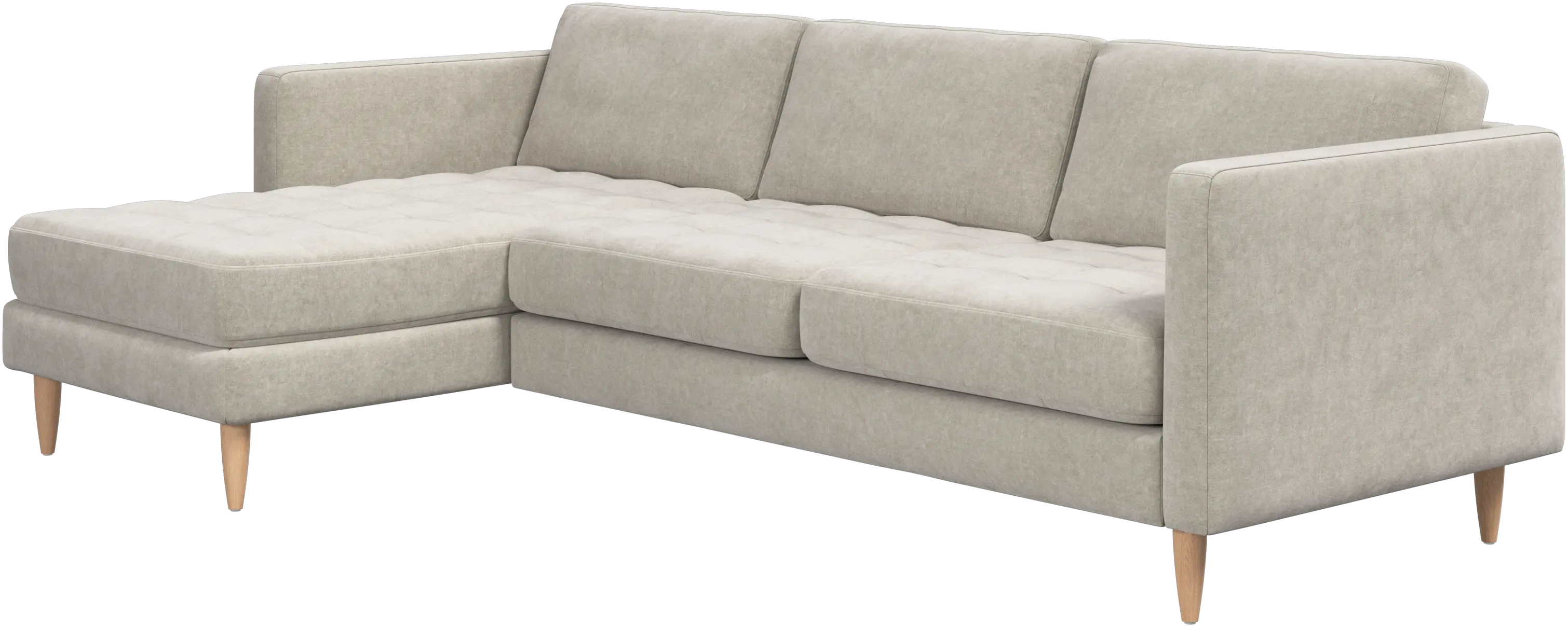 A light look and slim proportions make the Osaka sofa perfect for small homes, while a subtle feminine look and a touch of 60s design ensure that the Osaka sofa still packs a style punch. The beautiful tufted seats add visual softness and bring a classic look to your living room. The classic, straight armrests emphasise the clean lines and Scandinavian look. Put your feet up, stretch out or use it as an extra seat – you won’t be sorry for choosing this comfortable chaise longue sofa.
