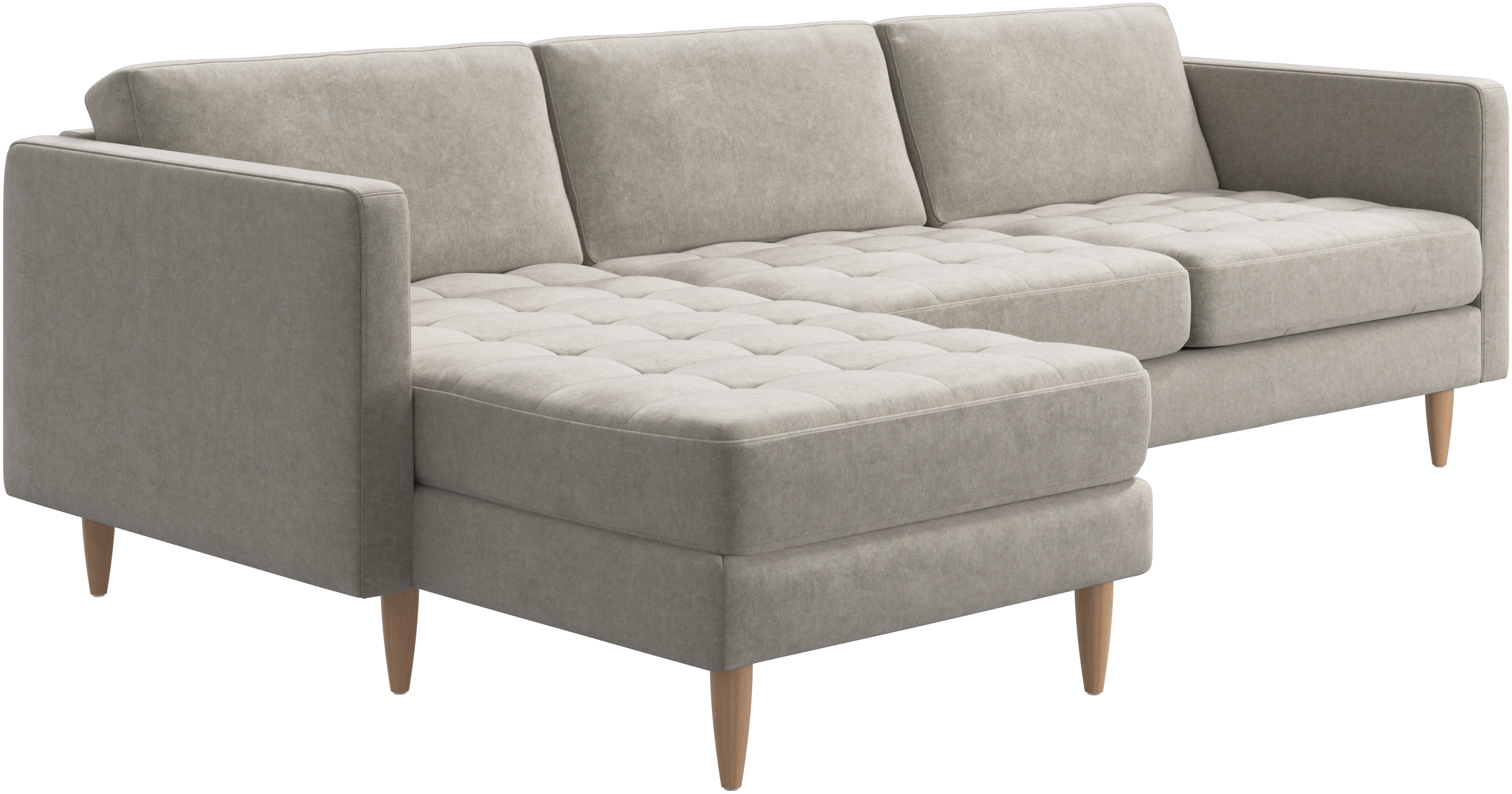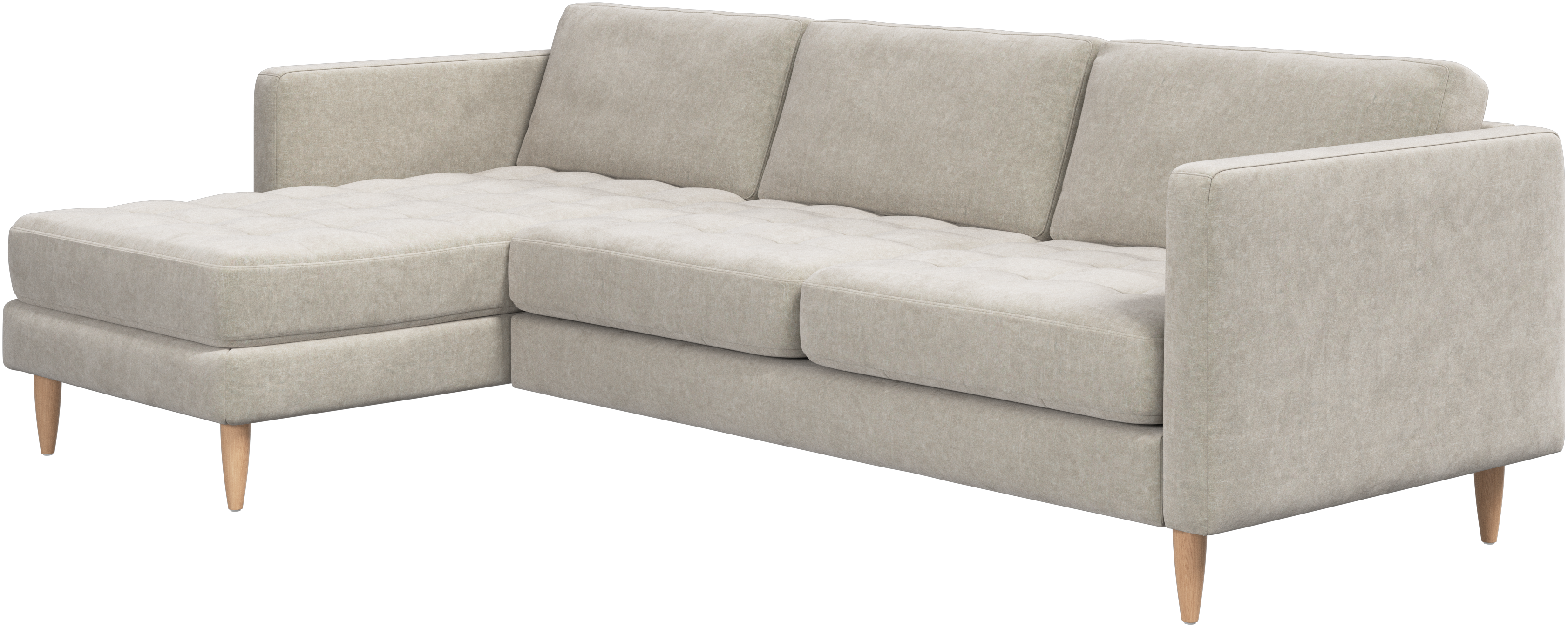 A light look and slim proportions make the Osaka sofa perfect for small homes, while a subtle feminine look and a touch of 60s design ensure that the Osaka sofa still packs a style punch. The beautiful tufted seats add visual softness and bring a classic look to your living room. The classic, straight armrests emphasise the clean lines and Scandinavian look. Put your feet up, stretch out or use it as an extra seat – you won’t be sorry for choosing this comfortable chaise longue sofa.