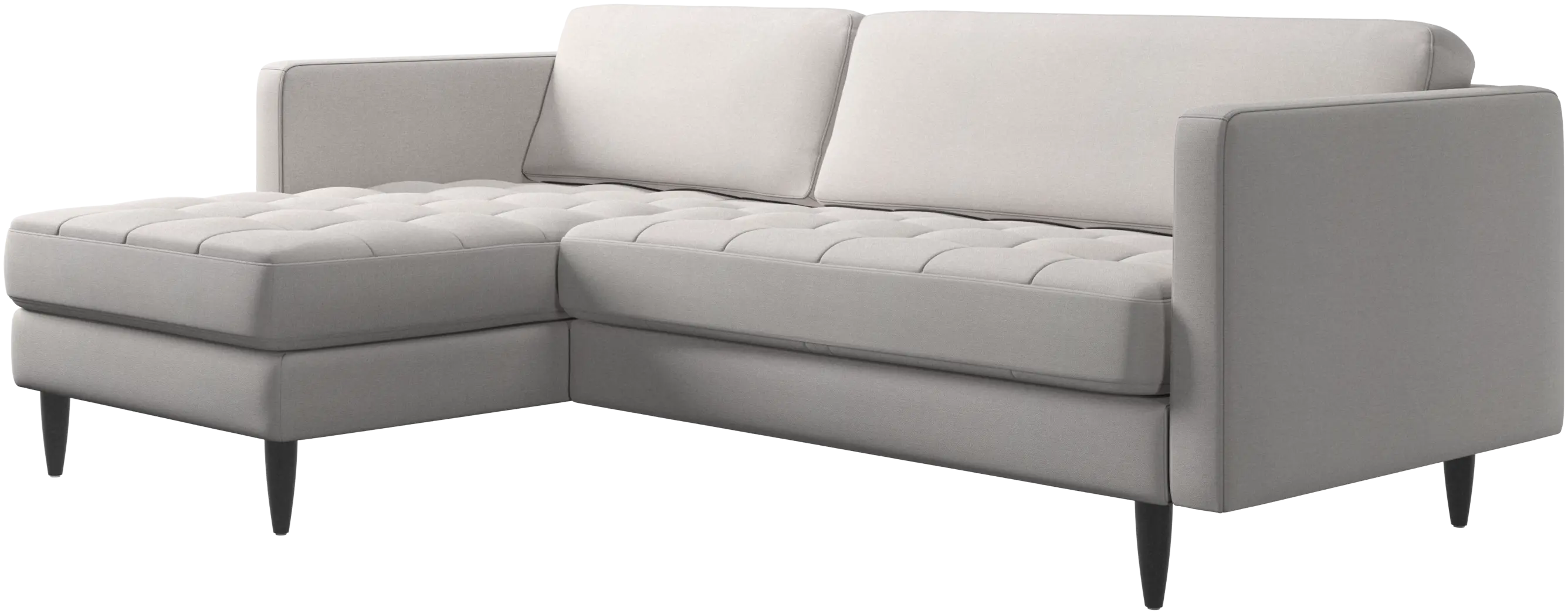A light look and slim proportions make the Osaka sofa perfect for small homes, while a subtle feminine look and a touch of 60s design ensure that the Osaka sofa still packs a style punch. The beautiful tufted seats add visual softness and bring a classic look to your living room. The classic, straight armrests emphasise the clean lines and Scandinavian look. Put your feet up, stretch out or use it as an extra seat – you won’t be sorry for choosing this comfortable chaise longue sofa.
