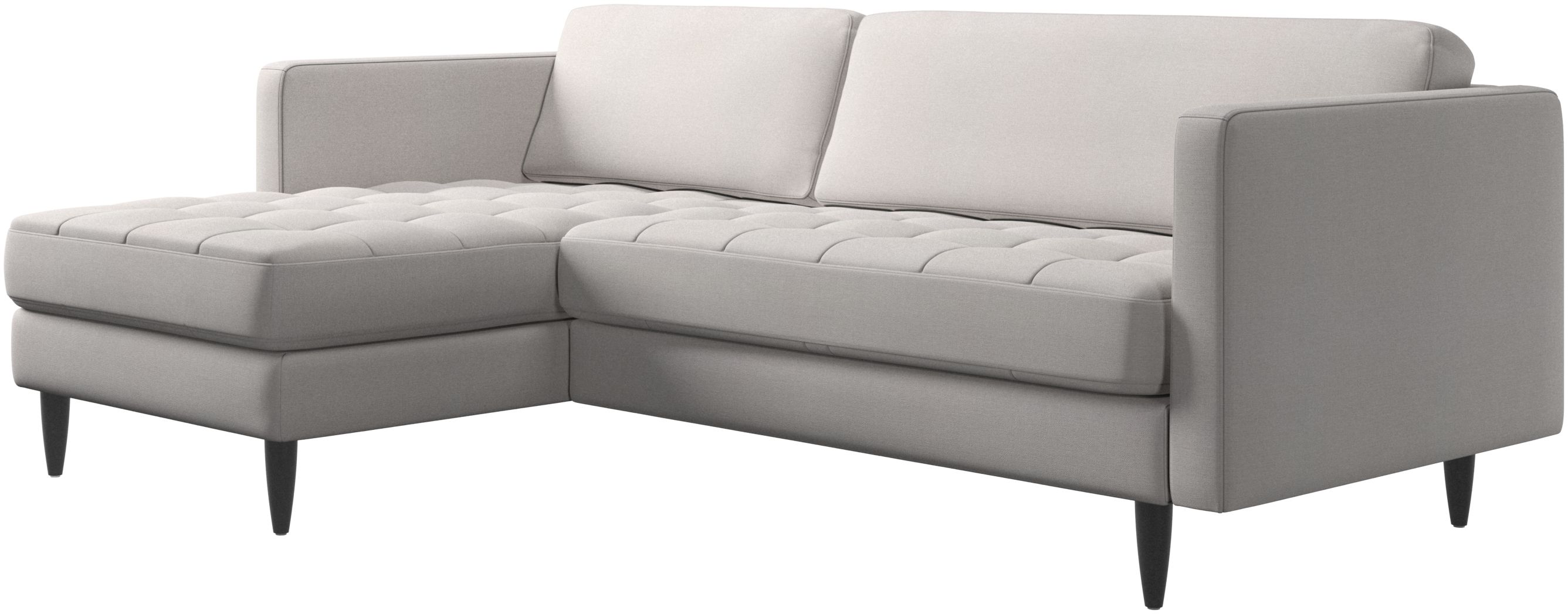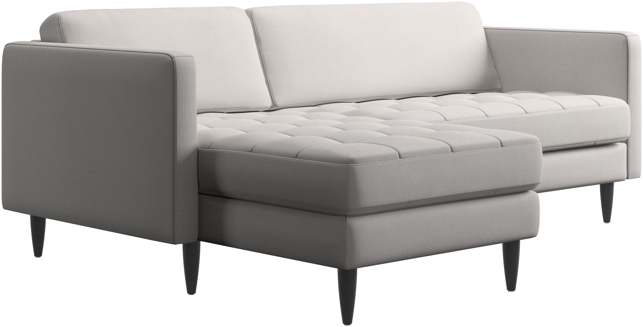 A light look and slim proportions make the Osaka sofa perfect for small homes, while a subtle feminine look and a touch of 60s design ensure that the Osaka sofa still packs a style punch. The beautiful tufted seats add visual softness and bring a classic look to your living room. The classic, straight armrests emphasise the clean lines and Scandinavian look. Put your feet up, stretch out or use it as an extra seat – you won’t be sorry for choosing this comfortable chaise longue sofa.