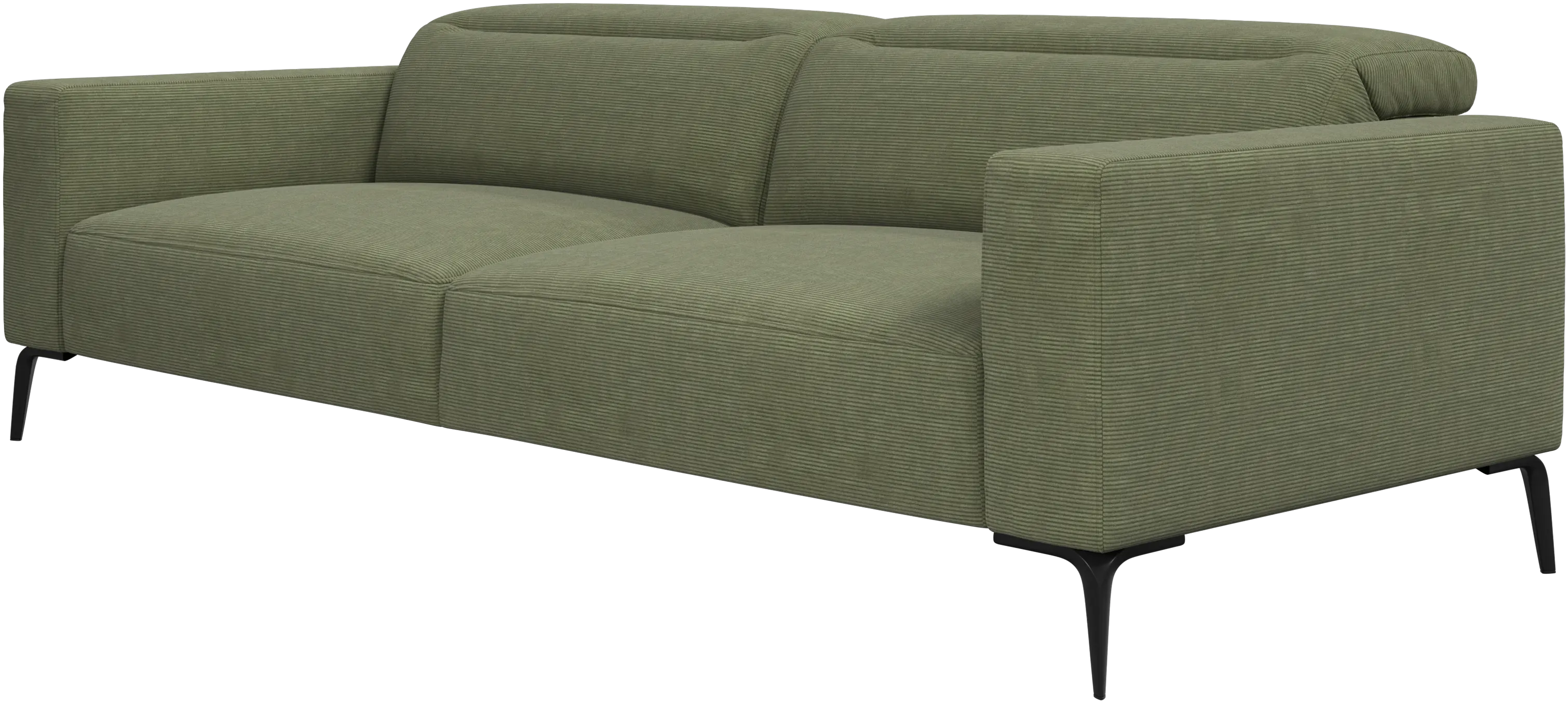 The soft rounded shape of the sofa’s edges combines with an open base to ensure a light and elegant look in the comfortable sofa.