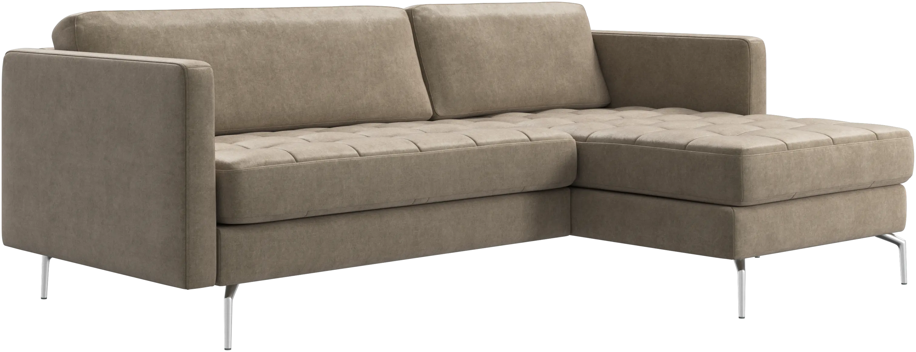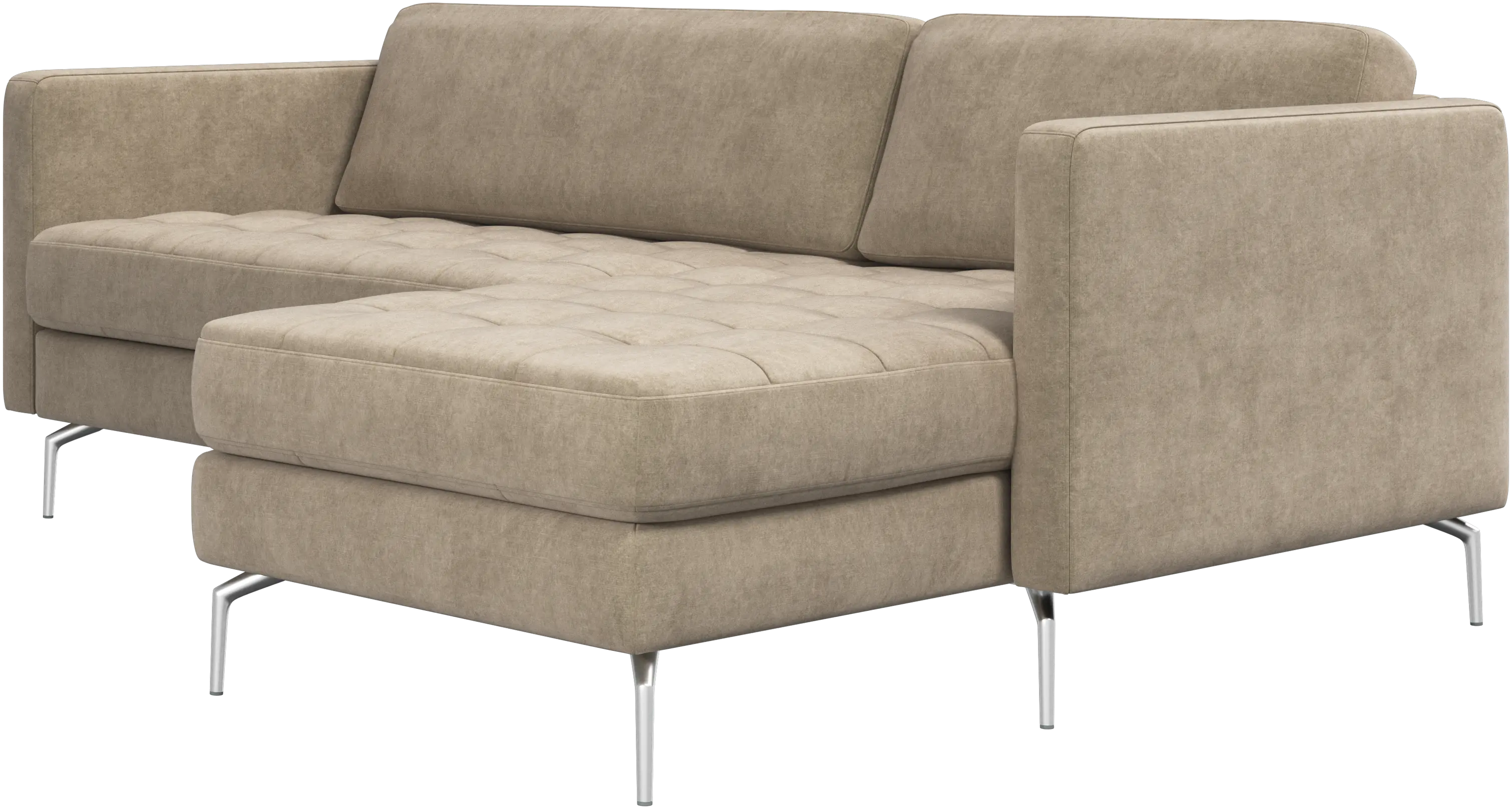 A light look and slim proportions make the Osaka sofa perfect for small homes, while a subtle feminine look and a touch of 60s design ensure that the Osaka sofa still packs a style punch. The beautiful tufted seats add visual softness and bring a classic look to your living room. The classic, straight armrests emphasise the clean lines and Scandinavian look. Put your feet up, stretch out or use it as an extra seat – you won’t be sorry for choosing this comfortable chaise longue sofa.
