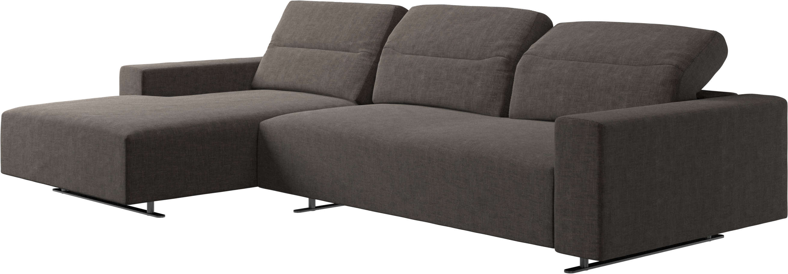 We know. It’s beautiful. But the modern Hampton sofa is much more than just good looks. A low base, a stunning loft look, adjustable backrests for comfort and visual impact – the Hampton sofa is the perfect personal retreat. Put your feet up, stretch out or use it as an extra seat – you won’t be sorry for choosing this comfortable chaise longue sofa. And with clever built-in storage in the armrest, you will always have your living room essentials at hand.
