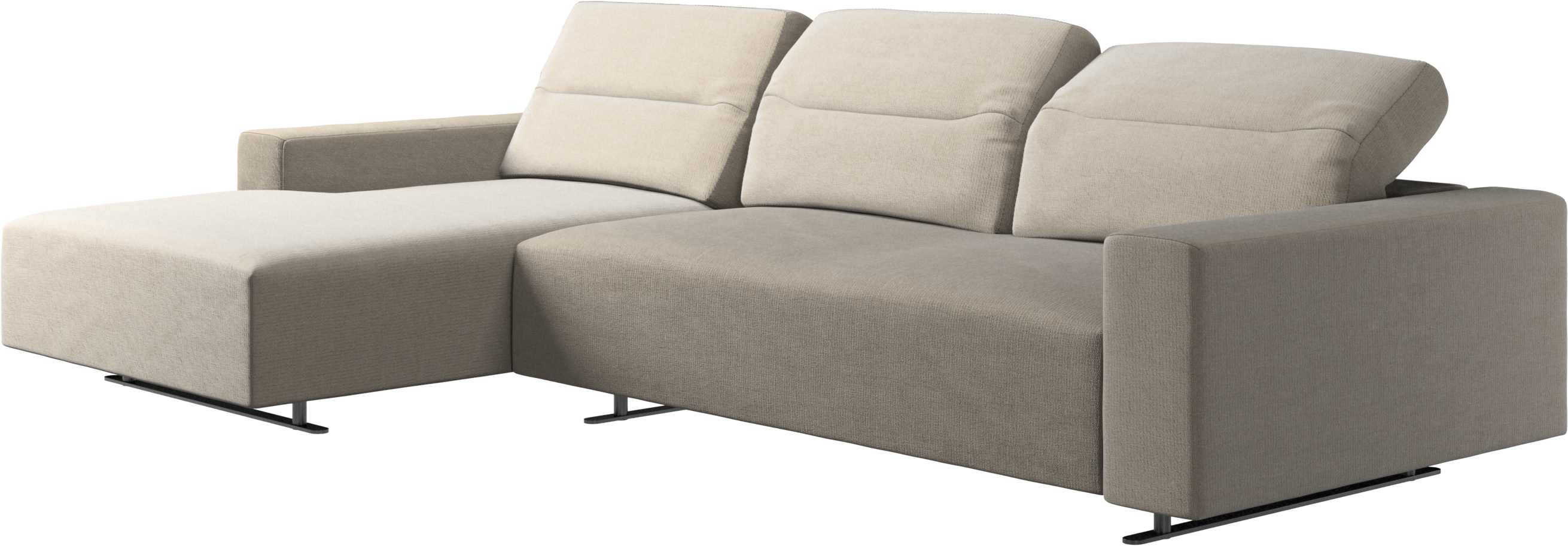We know. It’s beautiful. But the modern Hampton sofa is much more than just good looks. A low base, a stunning loft look, adjustable backrests for comfort and visual impact – the Hampton sofa is the perfect personal retreat. Put your feet up, stretch out or use it as an extra seat – you won’t be sorry for choosing this comfortable chaise longue sofa. And with clever built-in storage in the armrest, you will always have your living room essentials at hand.