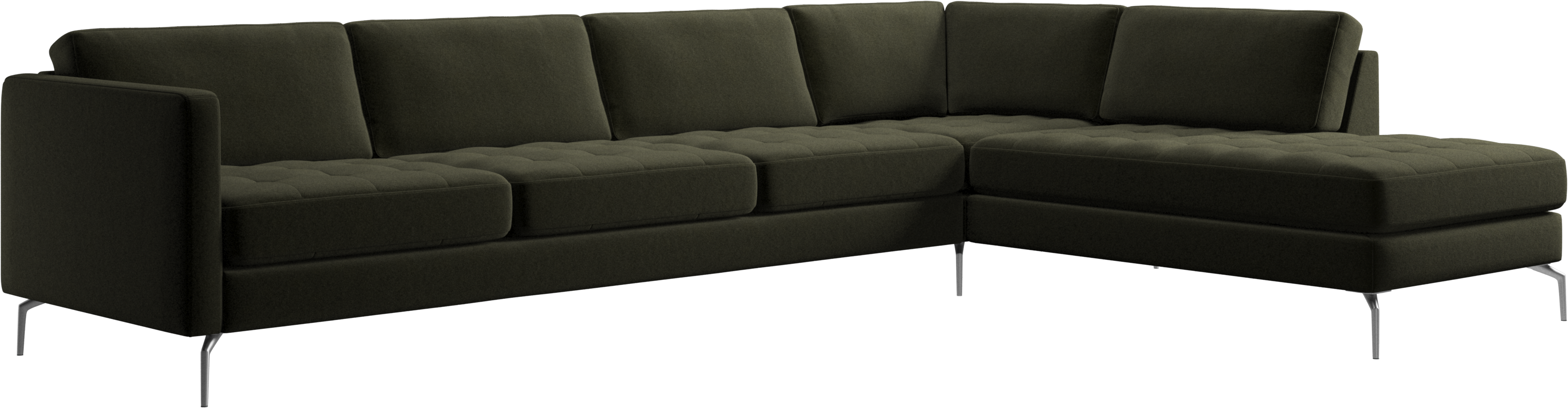 A light look and slim proportions make the Osaka sofa perfect for small homes, while a subtle feminine look and a touch of 60s design ensure that the Osaka sofa still packs a style punch. The beautiful tufted seats add visual softness and bring a classic look to your living room. The classic, straight armrests emphasise the clean lines and Scandinavian look. With plenty of room for the entire family this corner sofa will be the hero of your living room. The open end will create a dynamic, welcoming atmosphere - a true blessing for the integrated areas of open-plan living. Put your feet up, stretch out or use it as an extra seat – you won’t be sorry for choosing this comfortable chaise longue sofa.