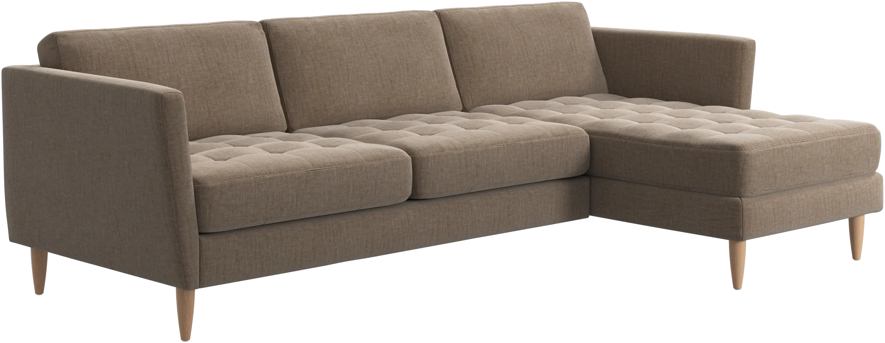 A light look and slim proportions make the Osaka sofa perfect for small homes, while a subtle feminine look and a touch of 60s design ensure that the Osaka sofa still packs a style punch. The beautiful tufted seats add visual softness and bring a classic look to your living room. Inclined armrests give the sofa a modern, unique look and open it up to the rest of the room. Put your feet up, stretch out or use it as an extra seat – you won’t be sorry for choosing this comfortable chaise longue sofa.
