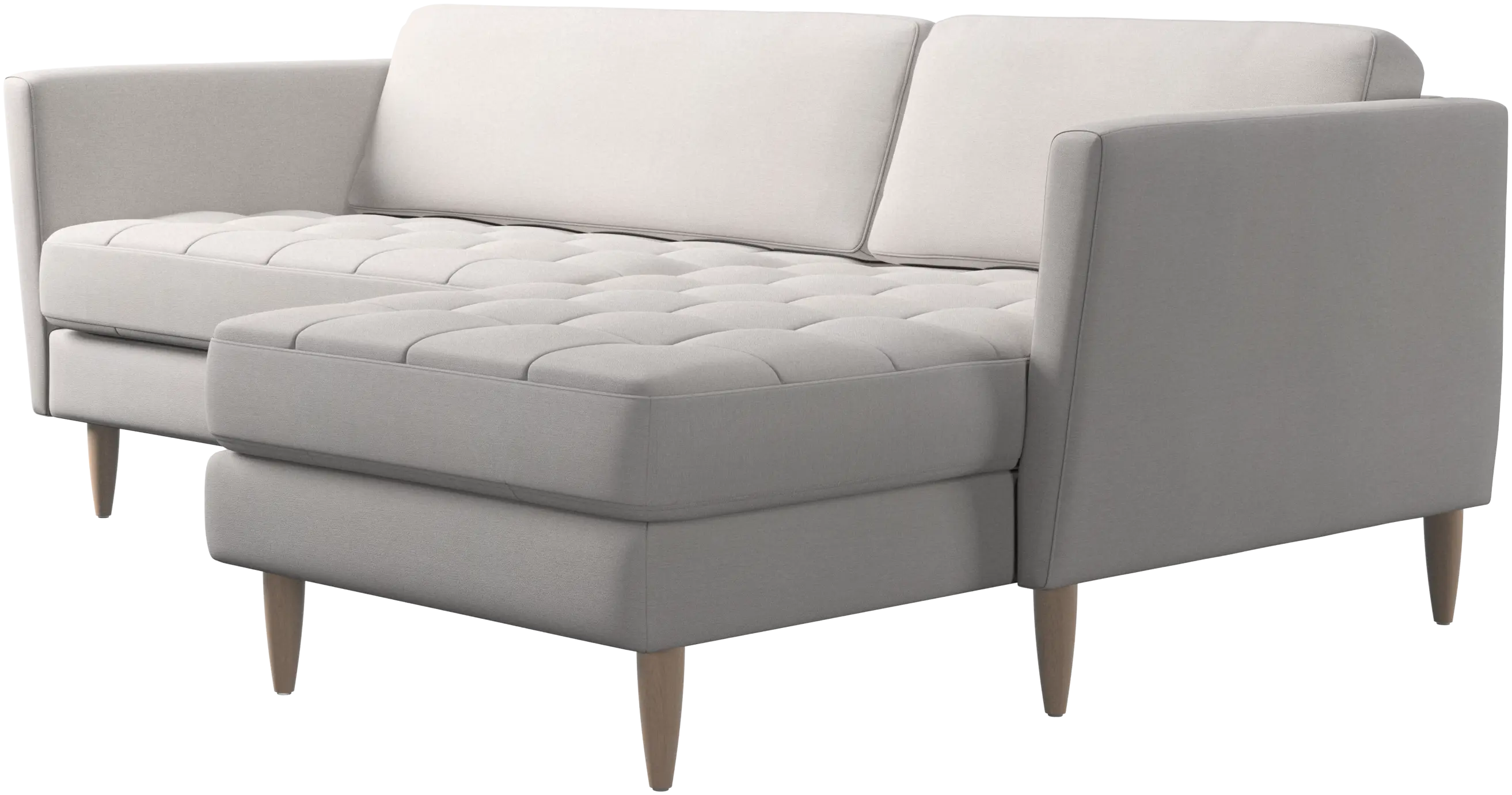 A light look and slim proportions make the Osaka sofa perfect for small homes, while a subtle feminine look and a touch of 60s design ensure that the Osaka sofa still packs a style punch. The beautiful tufted seats add visual softness and bring a classic look to your living room. Inclined armrests give the sofa a modern, unique look and open it up to the rest of the room. Put your feet up, stretch out or use it as an extra seat – you won’t be sorry for choosing this comfortable chaise longue sofa.