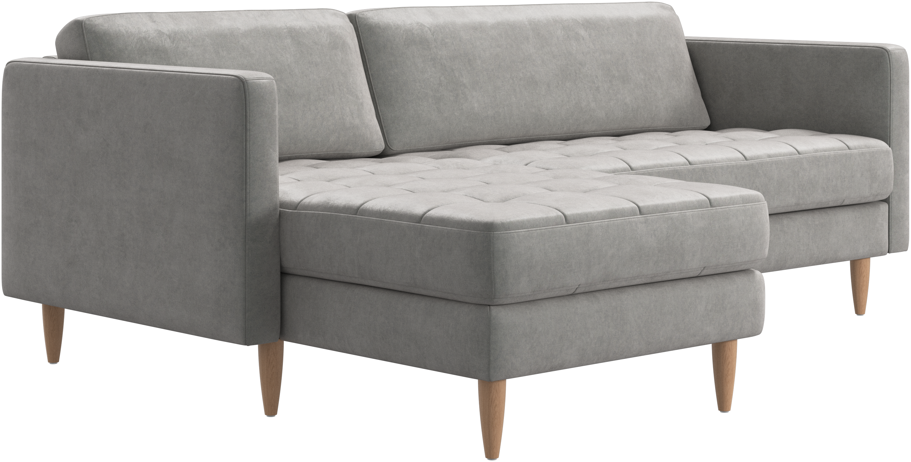 A light look and slim proportions make the Osaka sofa perfect for small homes, while a subtle feminine look and a touch of 60s design ensure that the Osaka sofa still packs a style punch. The beautiful tufted seats add visual softness and bring a classic look to your living room. The classic, straight armrests emphasise the clean lines and Scandinavian look. Put your feet up, stretch out or use it as an extra seat – you won’t be sorry for choosing this comfortable chaise longue sofa.