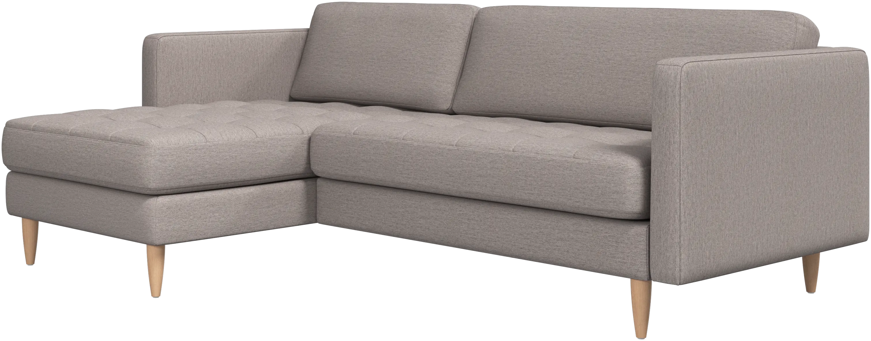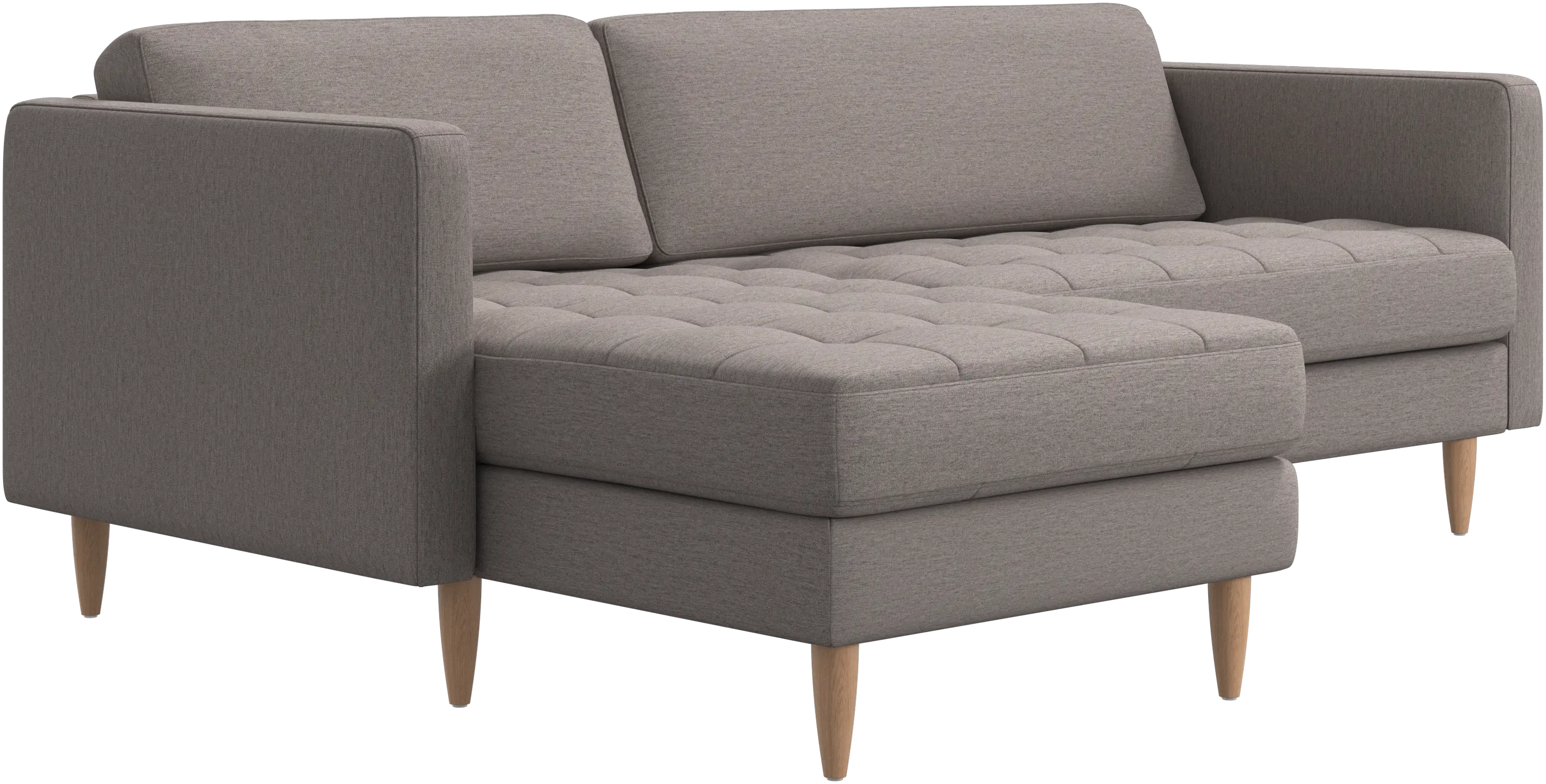 A light look and slim proportions make the Osaka sofa perfect for small homes, while a subtle feminine look and a touch of 60s design ensure that the Osaka sofa still packs a style punch. The beautiful tufted seats add visual softness and bring a classic look to your living room. The classic, straight armrests emphasise the clean lines and Scandinavian look. Put your feet up, stretch out or use it as an extra seat – you won’t be sorry for choosing this comfortable chaise longue sofa.