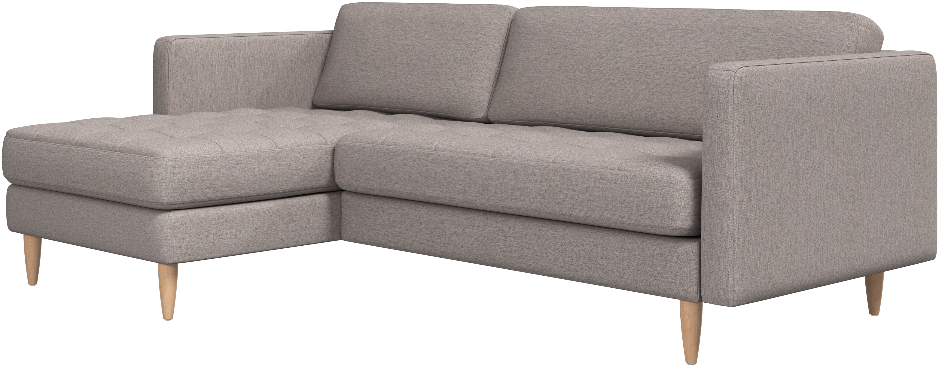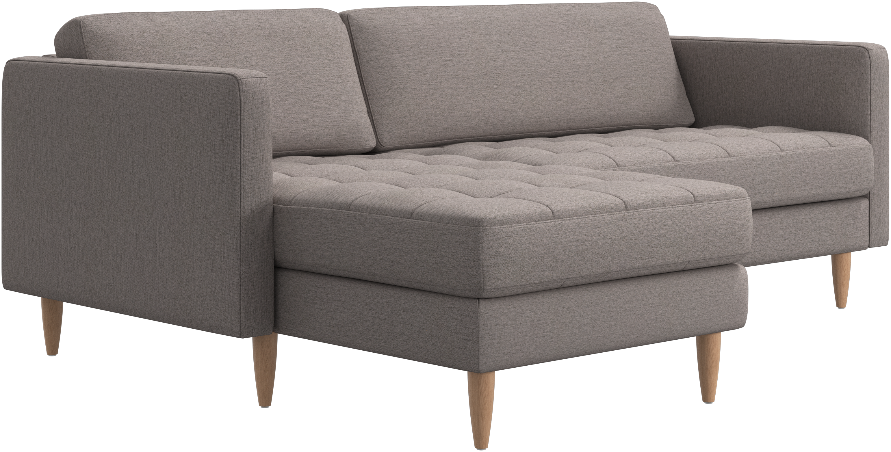A light look and slim proportions make the Osaka sofa perfect for small homes, while a subtle feminine look and a touch of 60s design ensure that the Osaka sofa still packs a style punch. The beautiful tufted seats add visual softness and bring a classic look to your living room. The classic, straight armrests emphasise the clean lines and Scandinavian look. Put your feet up, stretch out or use it as an extra seat – you won’t be sorry for choosing this comfortable chaise longue sofa.