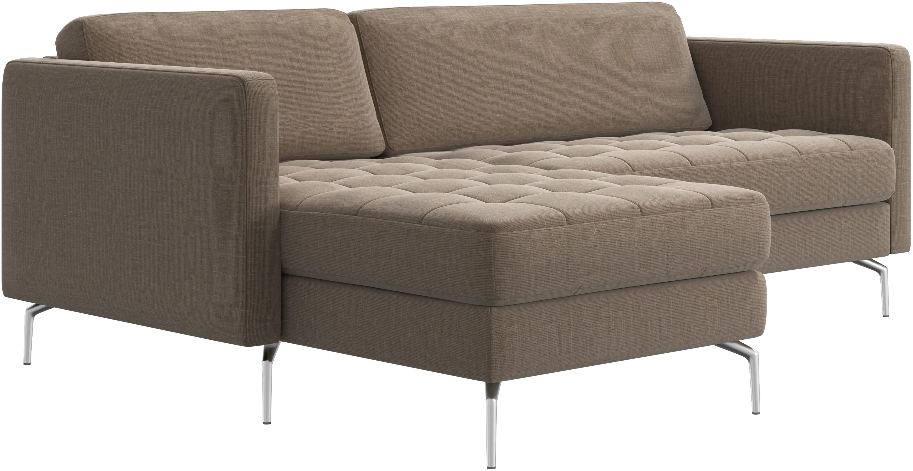 A light look and slim proportions make the Osaka sofa perfect for small homes, while a subtle feminine look and a touch of 60s design ensure that the Osaka sofa still packs a style punch. The beautiful tufted seats add visual softness and bring a classic look to your living room. The classic, straight armrests emphasise the clean lines and Scandinavian look. Put your feet up, stretch out or use it as an extra seat – you won’t be sorry for choosing this comfortable chaise longue sofa.