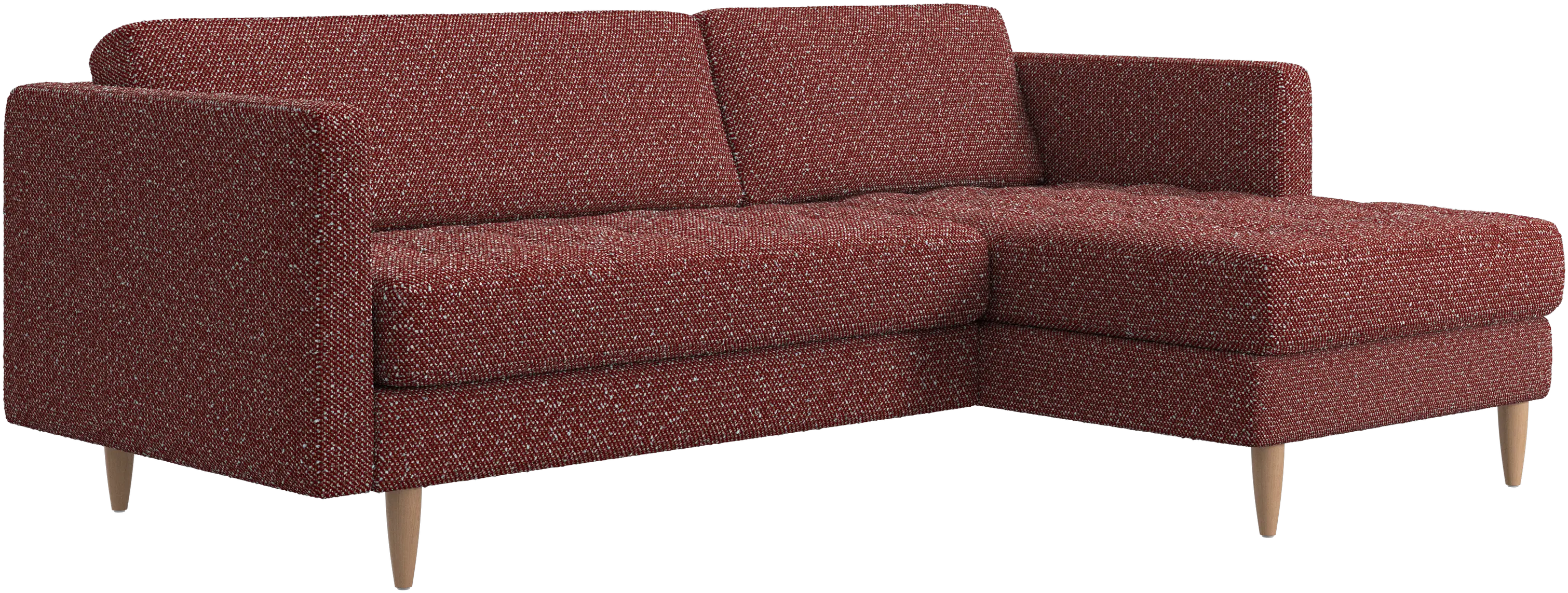 A light look and slim proportions make the Osaka sofa perfect for small homes, while a subtle feminine look and a touch of 60s design ensure that the Osaka sofa still packs a style punch. The beautiful tufted seats add visual softness and bring a classic look to your living room. The classic, straight armrests emphasise the clean lines and Scandinavian look. Put your feet up, stretch out or use it as an extra seat – you won’t be sorry for choosing this comfortable chaise longue sofa.