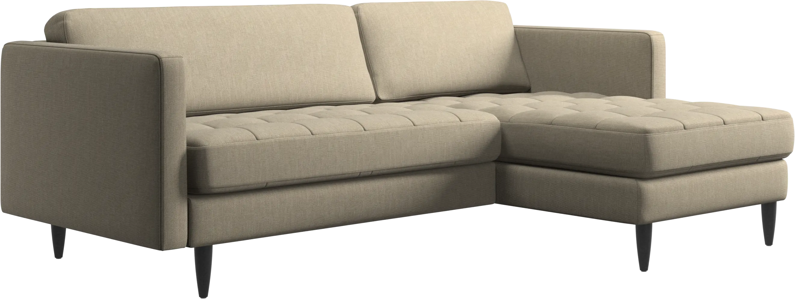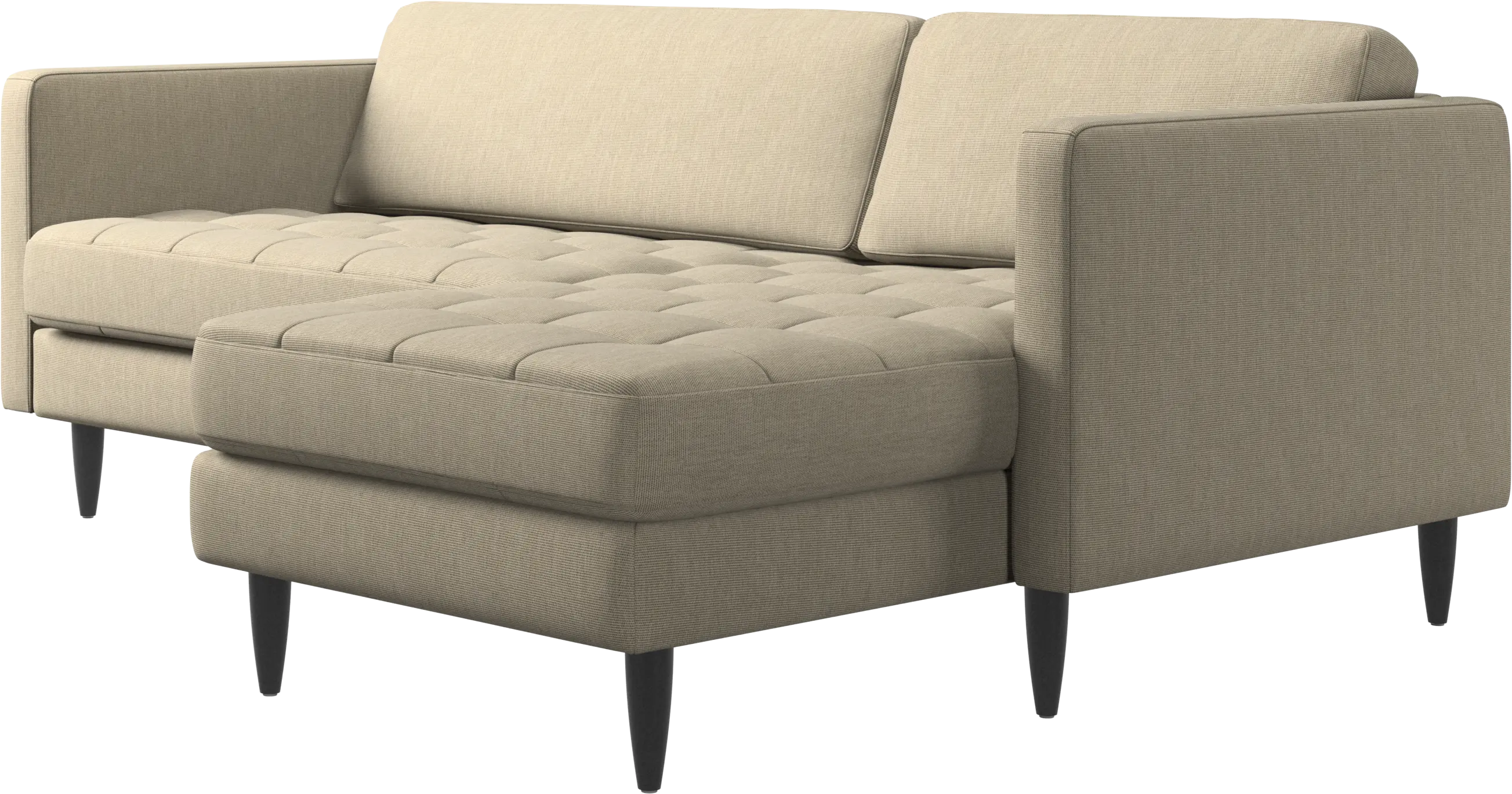 A light look and slim proportions make the Osaka sofa perfect for small homes, while a subtle feminine look and a touch of 60s design ensure that the Osaka sofa still packs a style punch. The beautiful tufted seats add visual softness and bring a classic look to your living room. The classic, straight armrests emphasise the clean lines and Scandinavian look. Put your feet up, stretch out or use it as an extra seat – you won’t be sorry for choosing this comfortable chaise longue sofa.
