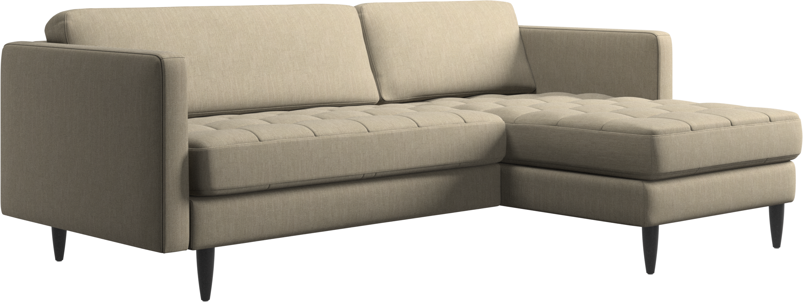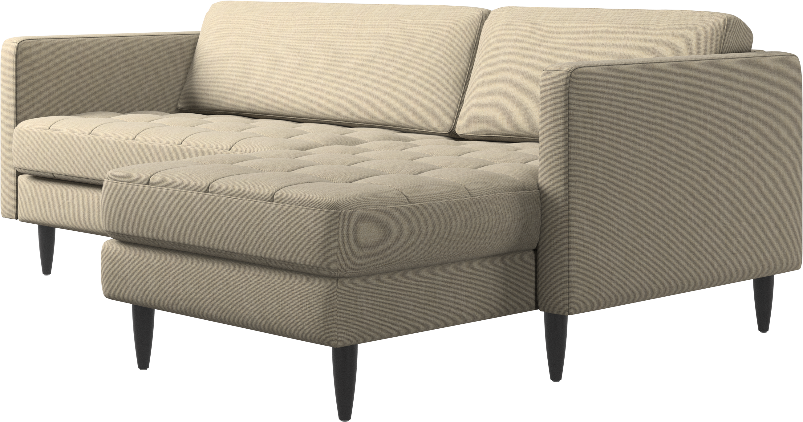 A light look and slim proportions make the Osaka sofa perfect for small homes, while a subtle feminine look and a touch of 60s design ensure that the Osaka sofa still packs a style punch. The beautiful tufted seats add visual softness and bring a classic look to your living room. The classic, straight armrests emphasise the clean lines and Scandinavian look. Put your feet up, stretch out or use it as an extra seat – you won’t be sorry for choosing this comfortable chaise longue sofa.