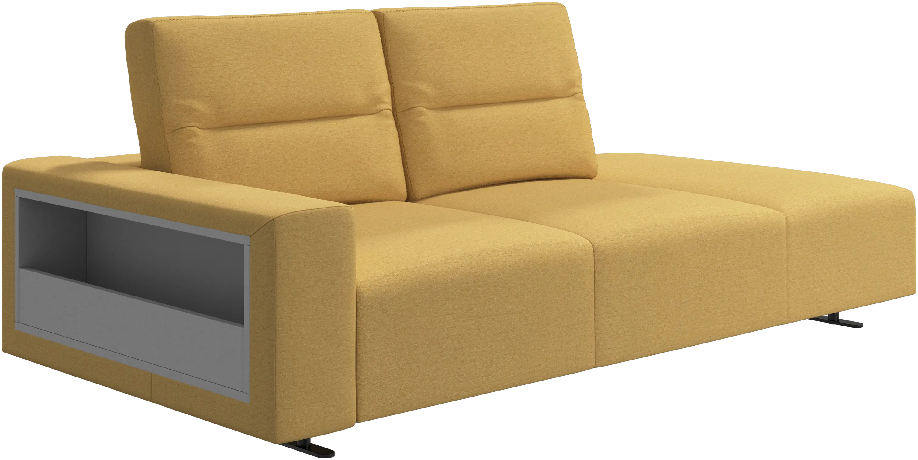 We know. It’s beautiful. But the modern Hampton sofa is much more than just good looks. A low base, a stunning loft look, adjustable backrests for comfort and visual impact – the Hampton sofa is the perfect personal retreat. The open end will create a dynamic, welcoming atmosphere - a true blessing for the integrated areas of open-plan living. And with clever built-in storage in the armrest, you will always have your living room essentials at hand.
