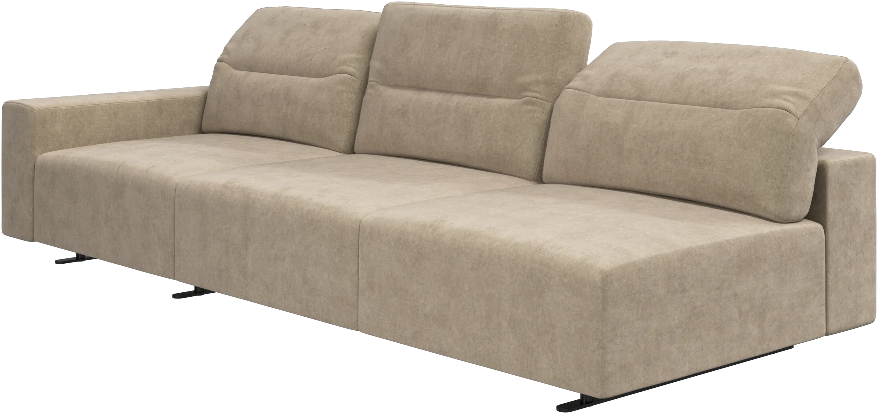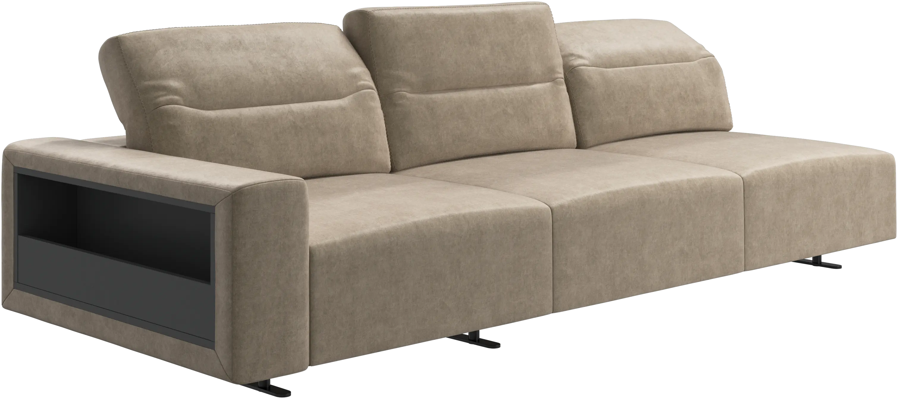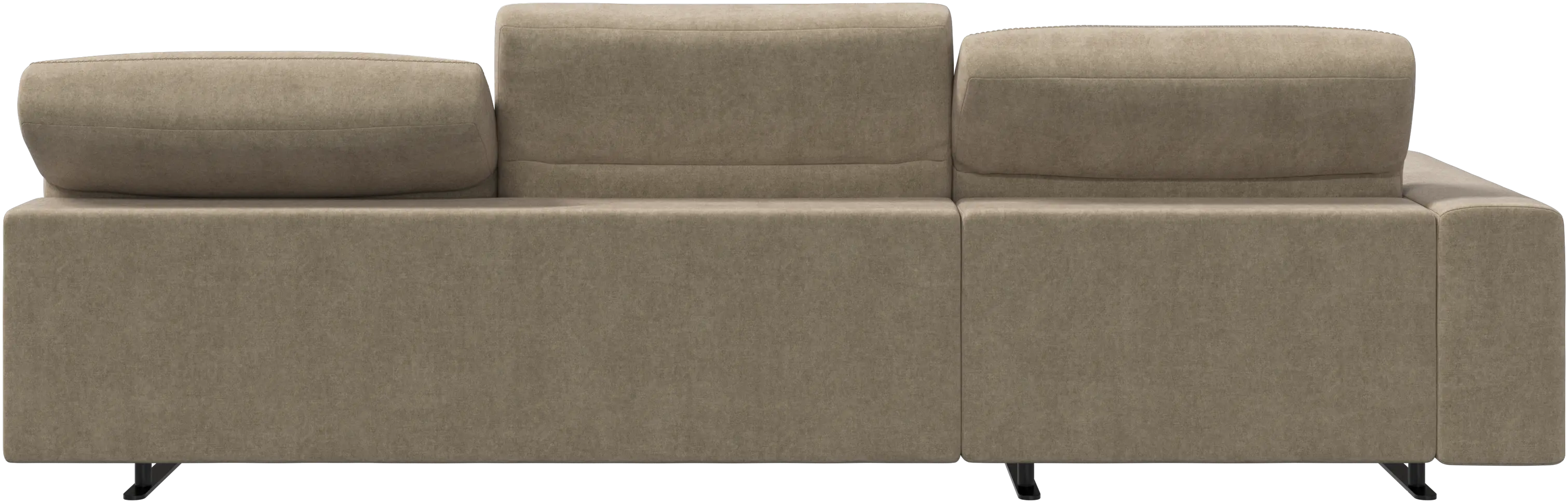 We know. It’s beautiful. But the modern Hampton sofa is much more than just good looks. A low base, a stunning loft look, adjustable backrests for comfort and visual impact – the Hampton sofa is the perfect personal retreat. Put your feet up, stretch out or use it as an extra seat – you won’t be sorry for choosing this comfortable chaise longue sofa. And with clever built-in storage in the armrest, you will always have your living room essentials at hand.