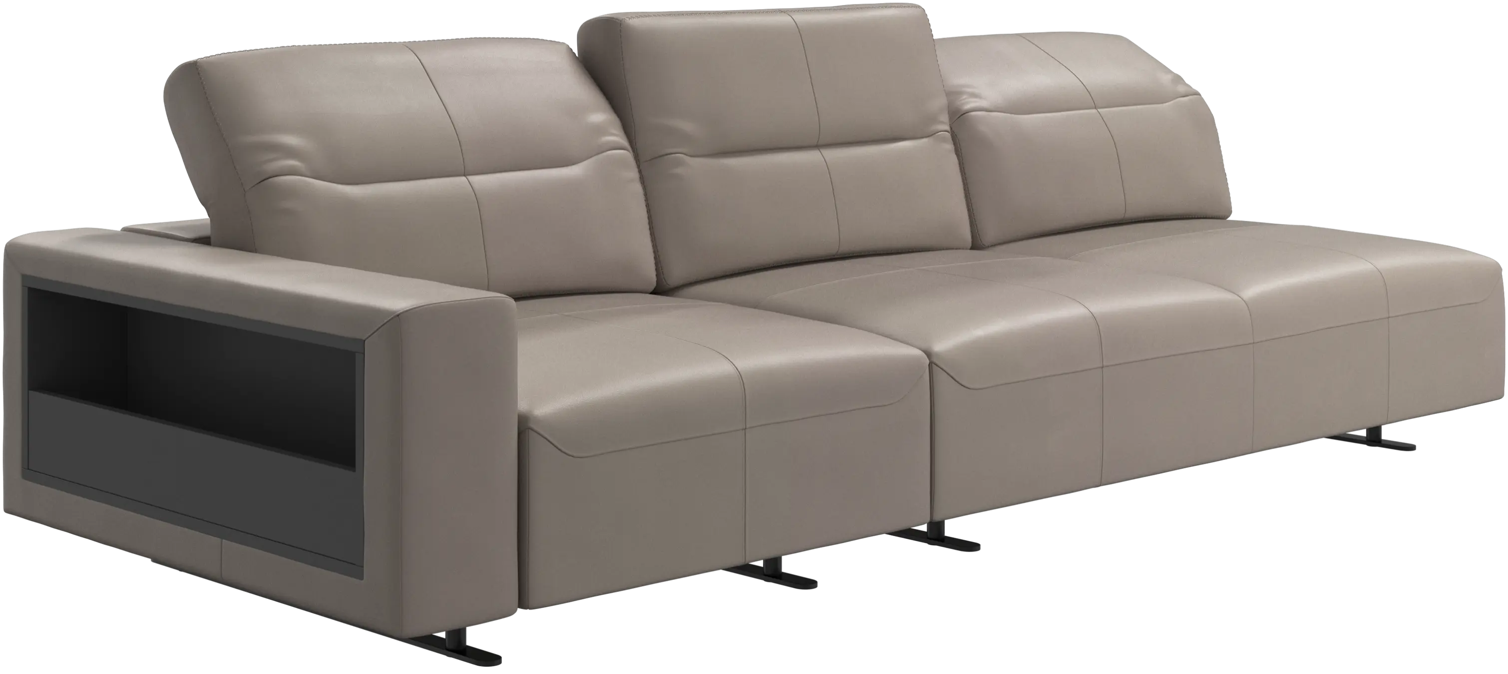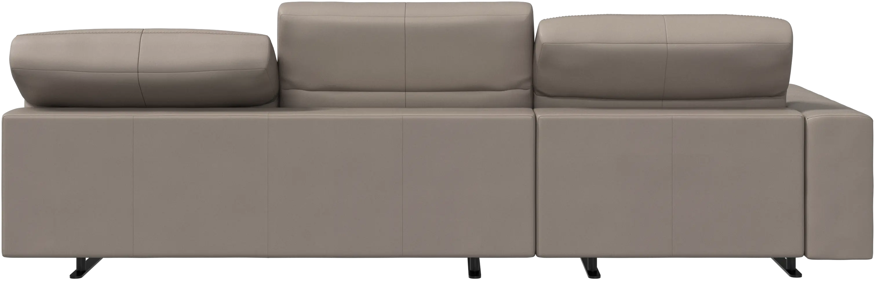We know. It’s beautiful. But the modern Hampton sofa is much more than just good looks. A low base, a stunning loft look, adjustable backrests for comfort and visual impact – the Hampton sofa is the perfect personal retreat. Put your feet up, stretch out or use it as an extra seat – you won’t be sorry for choosing this comfortable chaise longue sofa. And with clever built-in storage in the armrest, you will always have your living room essentials at hand.