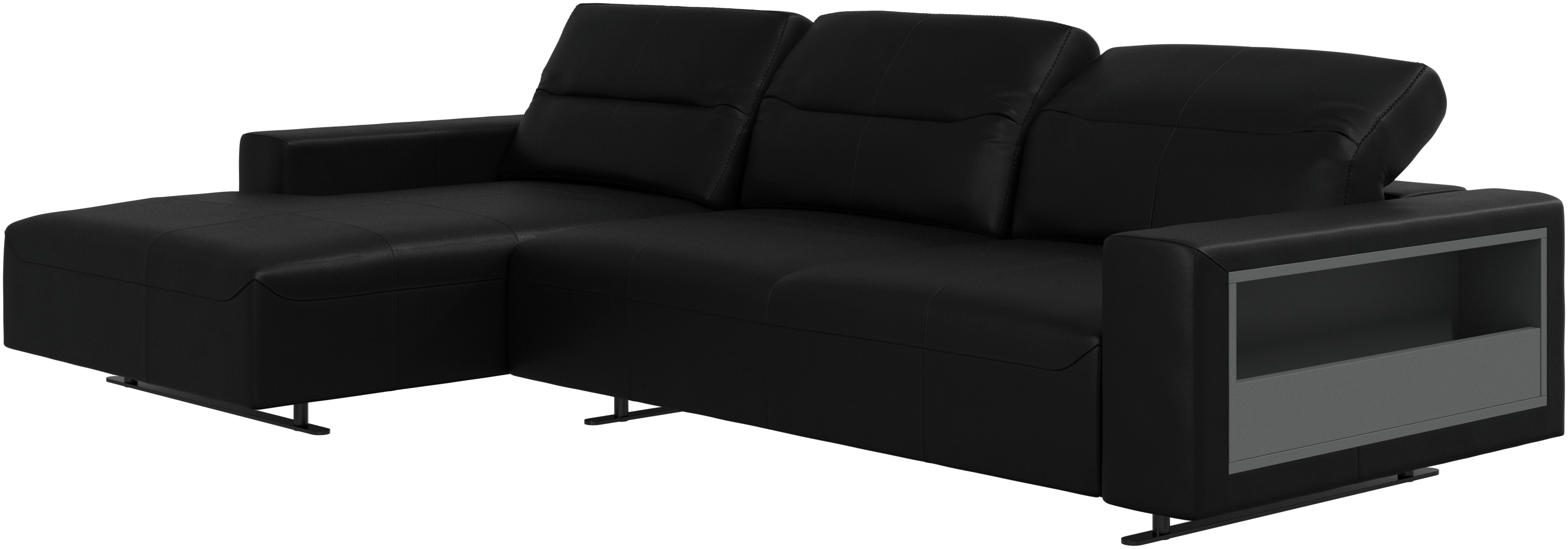We know. It’s beautiful. But the modern Hampton sofa is much more than just good looks. A low base, a stunning loft look, adjustable backrests for comfort and visual impact – the Hampton sofa is the perfect personal retreat. Put your feet up, stretch out or use it as an extra seat – you won’t be sorry for choosing this comfortable chaise longue sofa. And with clever built-in storage in the armrest, you will always have your living room essentials at hand.