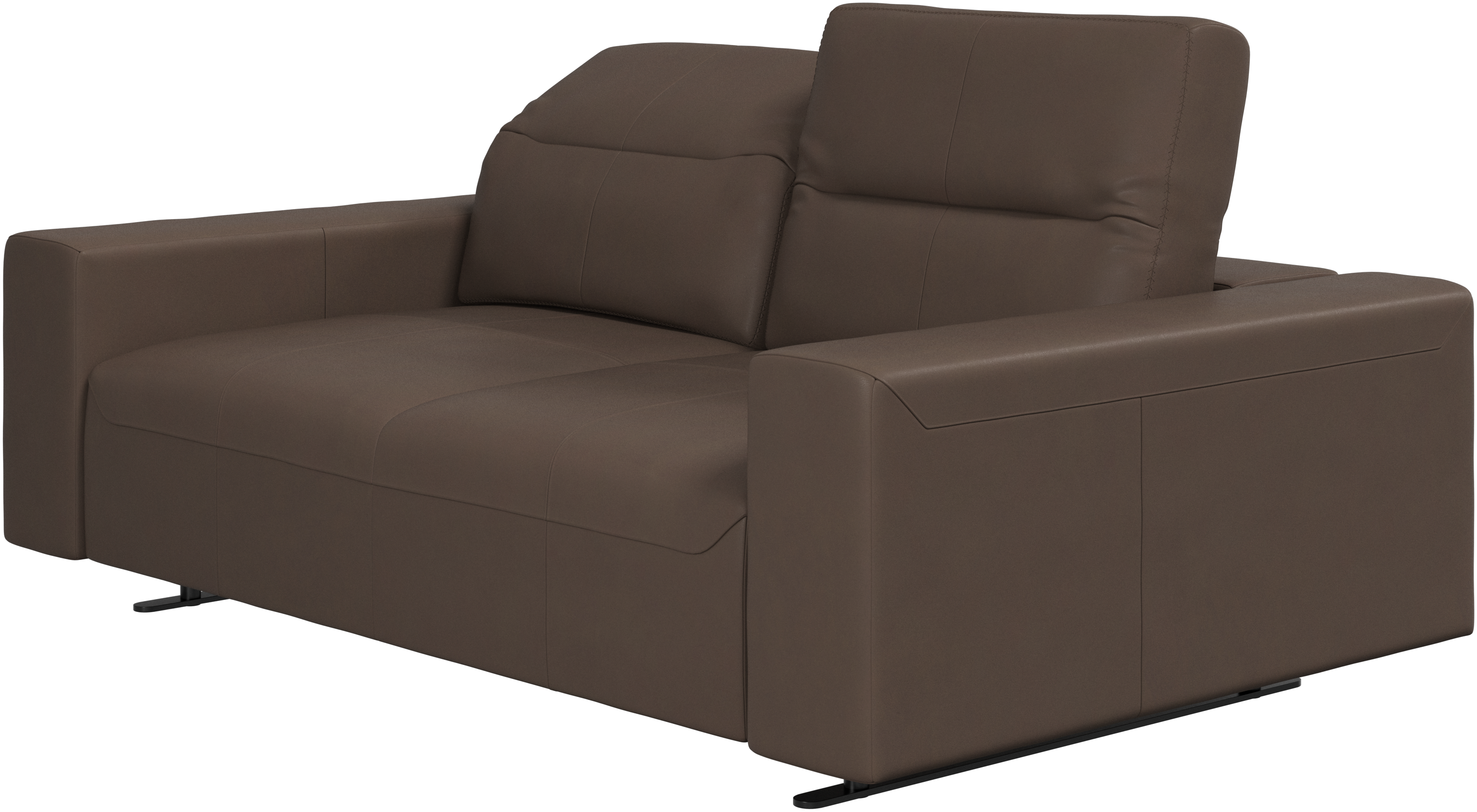The total depth of the seat is 107 cm meaning wide enough to sleep on. To ensure optimal support despite this deep seating area, a lumbar cushion and a scatter cushion are available in coordinated fabrics and leathers.