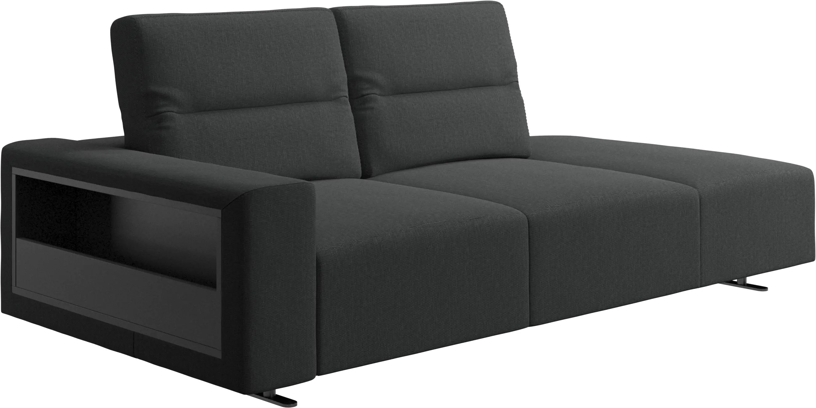 We know. It’s beautiful. But the modern Hampton sofa is much more than just good looks. A low base, a stunning loft look, adjustable backrests for comfort and visual impact – the Hampton sofa is the perfect personal retreat. The open end will create a dynamic, welcoming atmosphere - a true blessing for the integrated areas of open-plan living. And with clever built-in storage in the armrest, you will always have your living room essentials at hand.