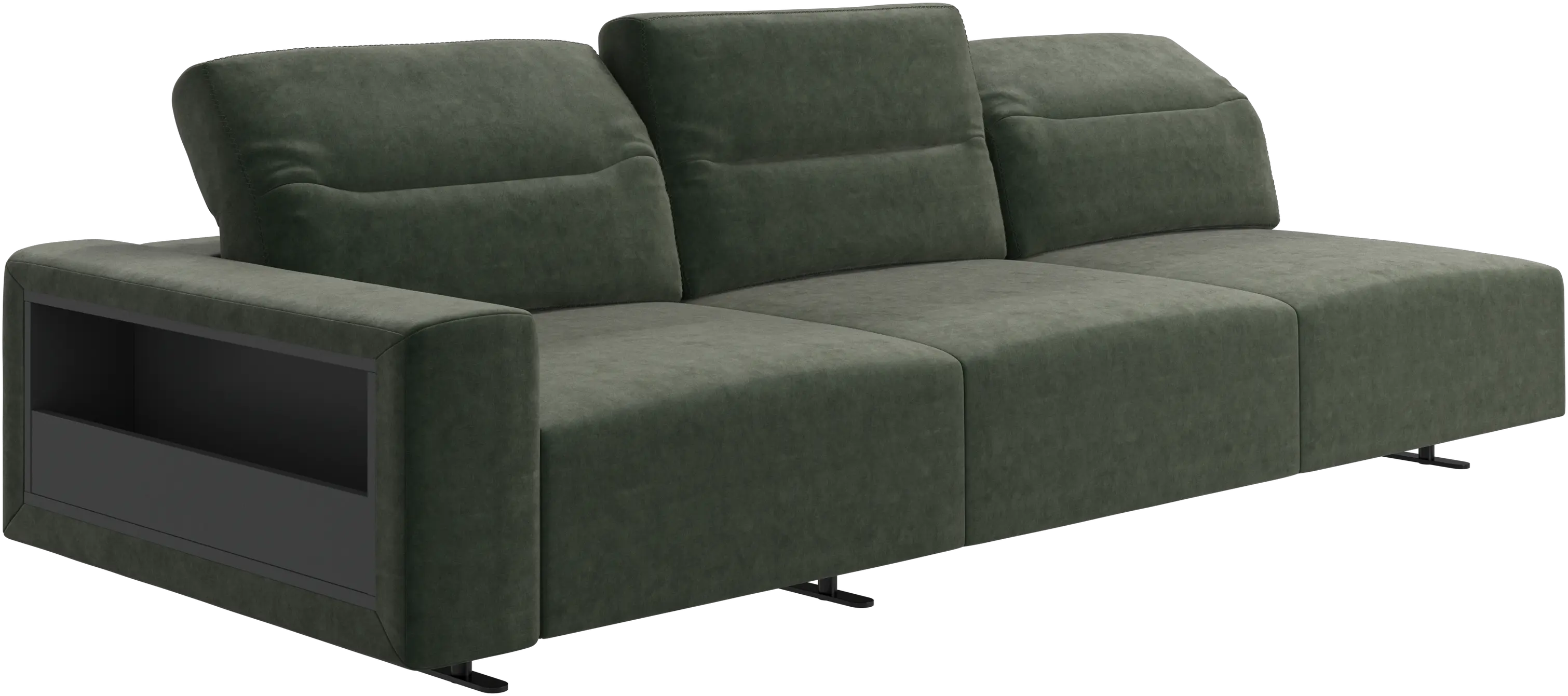 We know. It’s beautiful. But the modern Hampton sofa is much more than just good looks. A low base, a stunning loft look, adjustable backrests for comfort and visual impact – the Hampton sofa is the perfect personal retreat. Put your feet up, stretch out or use it as an extra seat – you won’t be sorry for choosing this comfortable chaise longue sofa. And with clever built-in storage in the armrest, you will always have your living room essentials at hand.