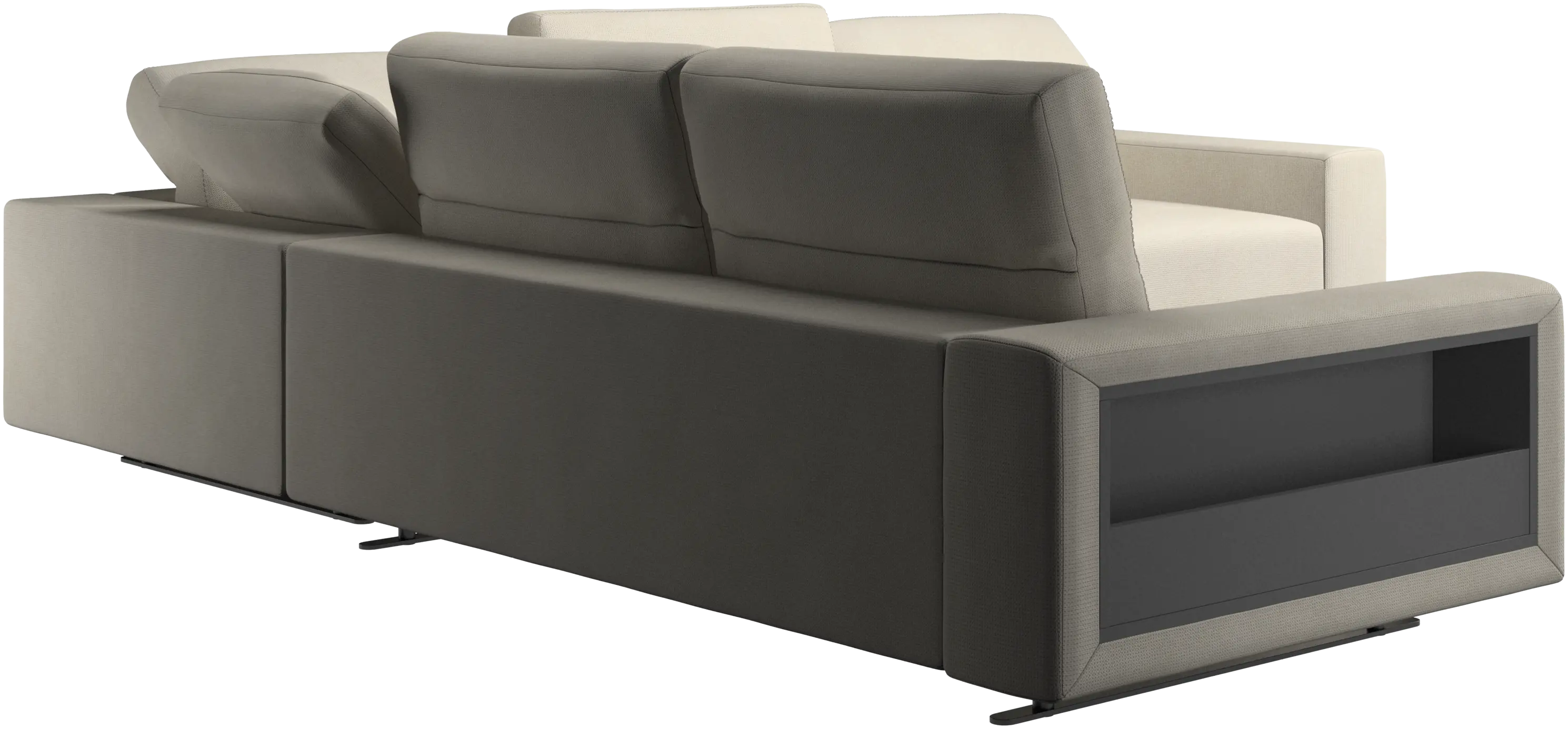 The total depth of the seat is 107 cm meaning wide enough to sleep on. To ensure optimal support despite this deep seating area, a lumbar cushion and a scatter cushion are available in coordinated fabrics and leathers.