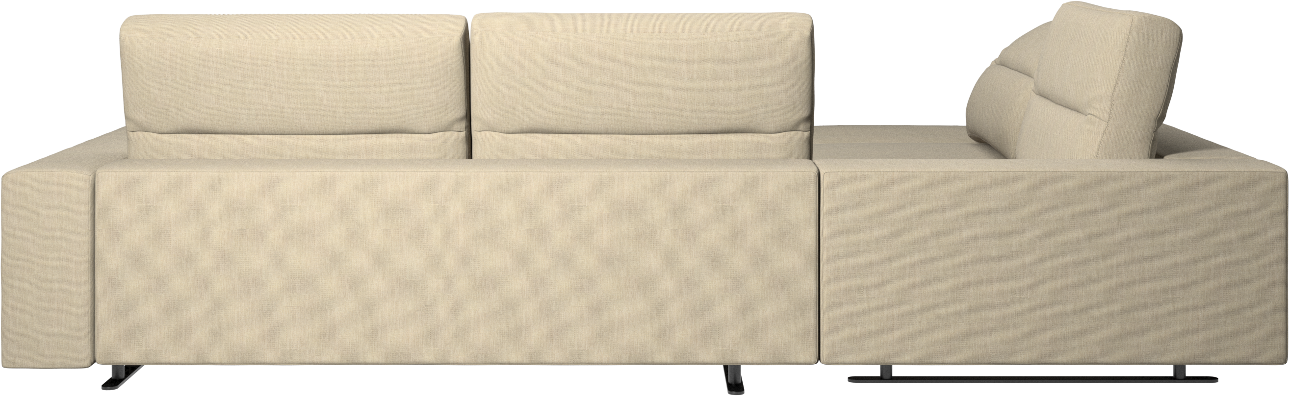 We know. It’s beautiful. But the modern Hampton sofa is much more than just good looks. A low base, a stunning loft look, adjustable backrests for comfort and visual impact – the Hampton sofa is the perfect personal retreat. The open end will create a dynamic, welcoming atmosphere - a true blessing for the integrated areas of open-plan living. And with clever built-in storage in the armrest, you will always have your living room essentials at hand.