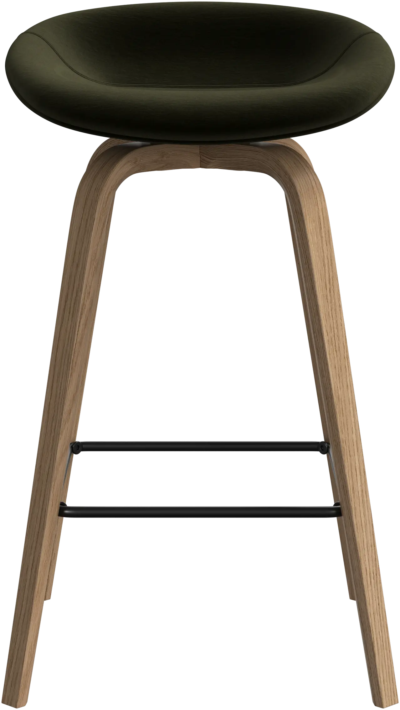 With a soft, organic form, the Hauge bar stool is your stylish solution for elevated seating. It has a fixed height to fit your home bar or open kitchen space and a metal footrest for contemporary comfort.