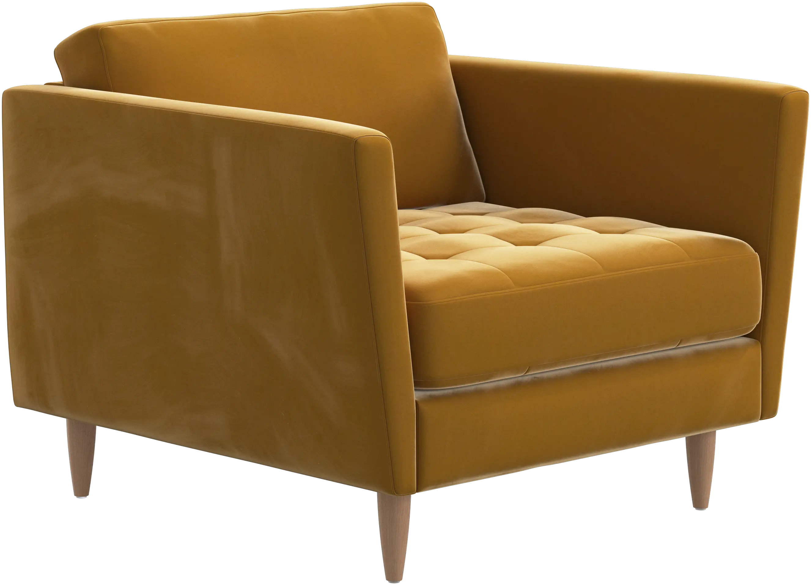 With a feminine touch and a nod to 60s design, the Osaka armchair is all about style. The light design and slim proportions make this armchair perfect for small homes or as part of a style coordinated living room set with the Osaka sofa. The beautiful tufted seat adds visual softness and brings a classic look to your living room. Inclined armrests give the armchair a modern, unique look and an open feel. Slim wooden legs complete the retro look.