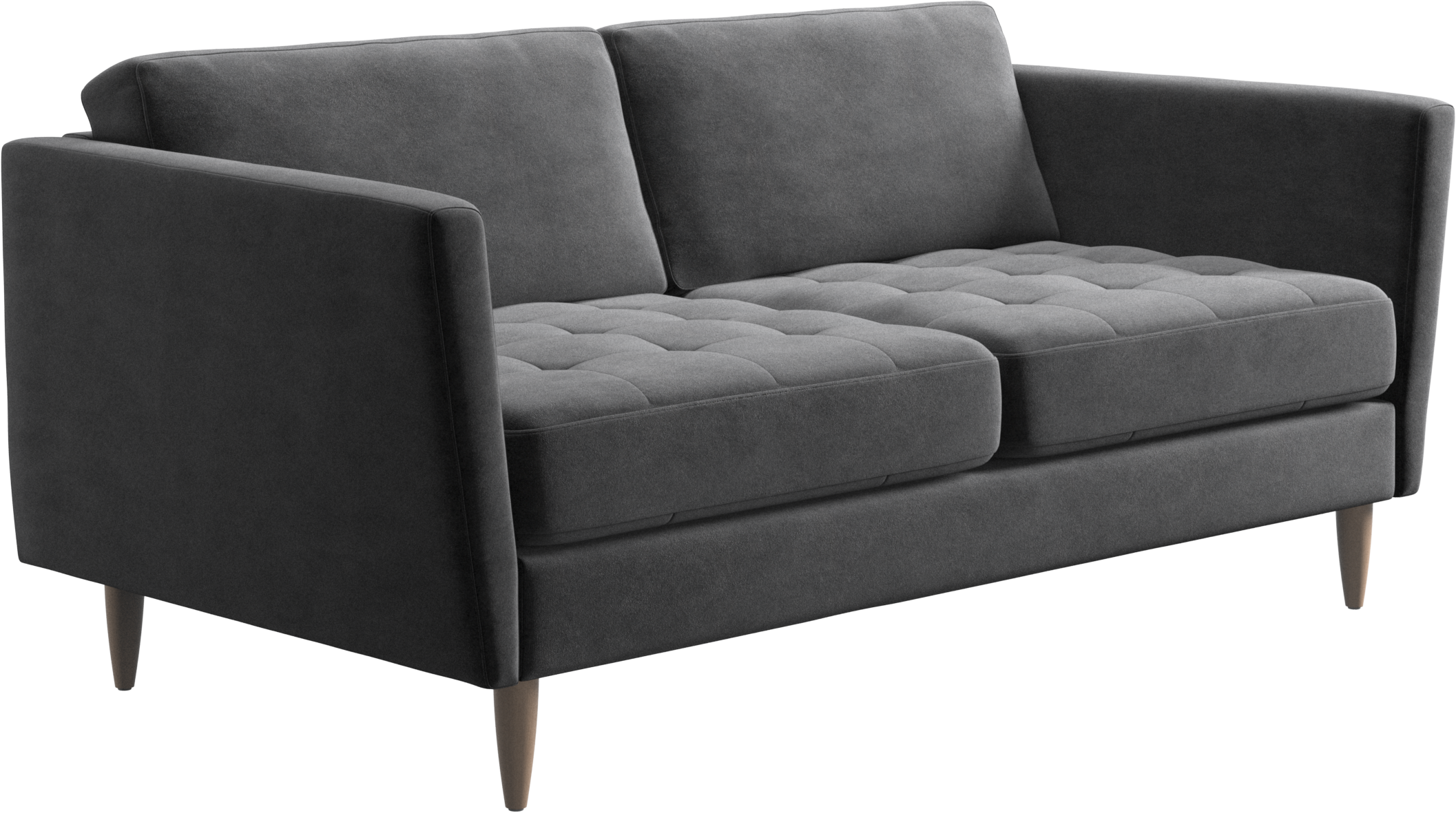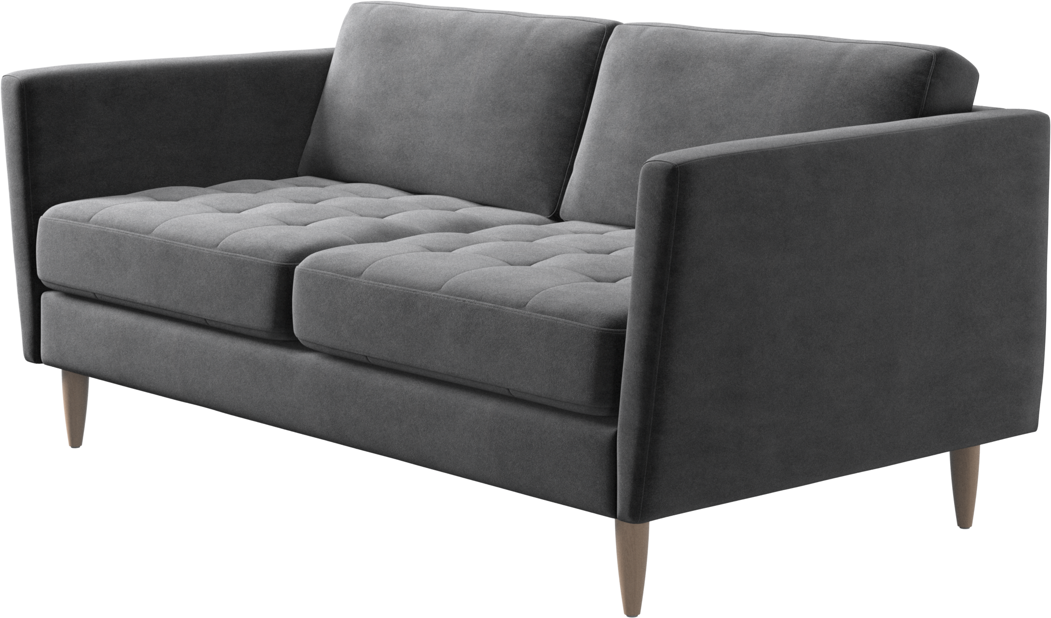 A light look and slim proportions make the Osaka sofa perfect for small homes, while a subtle feminine look and a touch of 60s design ensure that the Osaka sofa still packs a style punch. The beautiful tufted seats add visual softness and bring a classic look to your living room. Inclined armrests give the sofa a modern, unique look and open it up to the rest of the room. Though small in size, this 2 seater sofa is big on style and will perfectly fit a small living room.