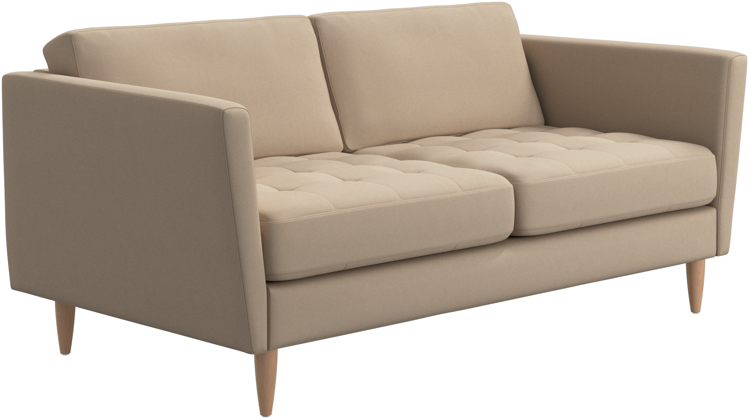 A light look and slim proportions make the Osaka sofa perfect for small homes, while a subtle feminine look and a touch of 60s design ensure that the Osaka sofa still packs a style punch. The beautiful tufted seats add visual softness and bring a classic look to your living room. Inclined armrests give the sofa a modern, unique look and open it up to the rest of the room. Though small in size, this 2 seater sofa is big on style and will perfectly fit a small living room.