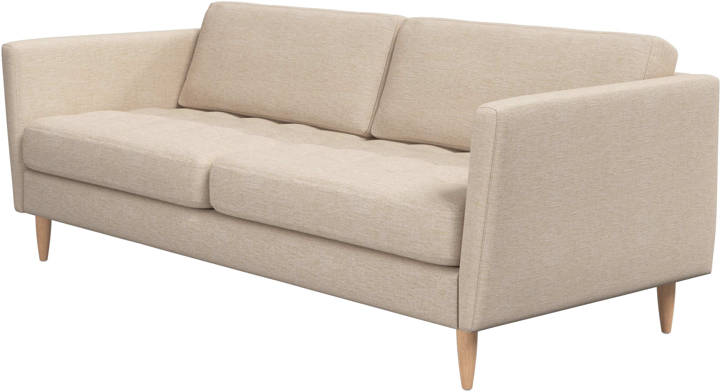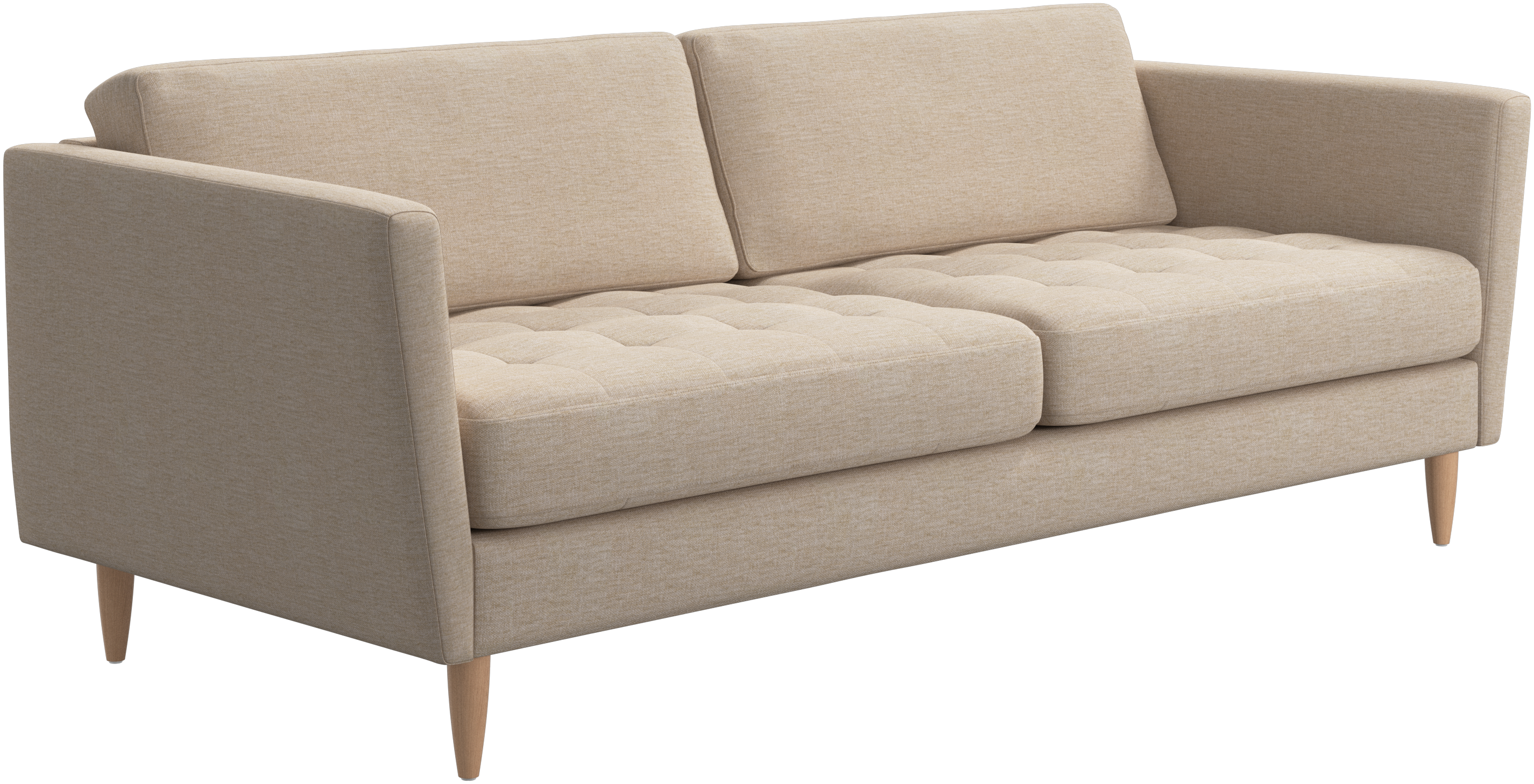A light look and slim proportions make the Osaka sofa perfect for small homes, while a subtle feminine look and a touch of 60s design ensure that the Osaka sofa still packs a style punch. The beautiful tufted seats add visual softness and bring a classic look to your living room. Inclined armrests give the sofa a modern, unique look and open it up to the rest of the room. While keeping the 2 seater look, this comfortable 2.5 seater sofa has wider seats for extra comfort.