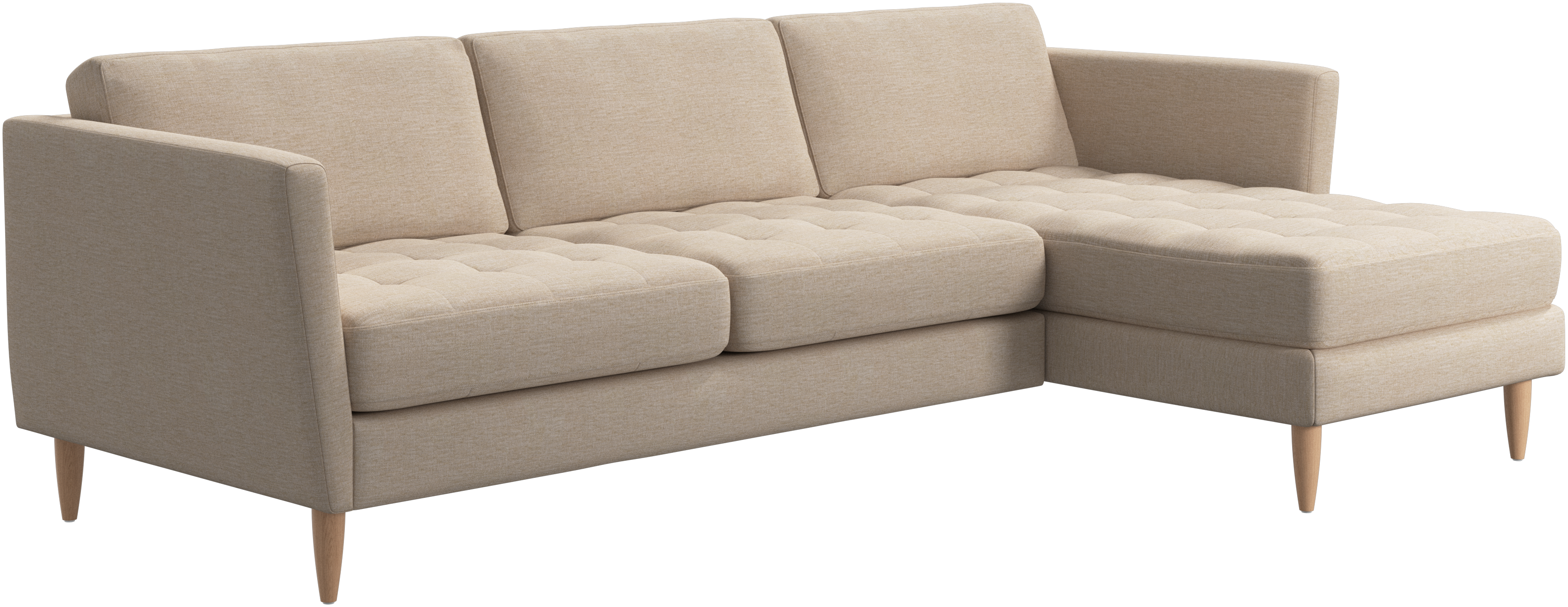 A light look and slim proportions make the Osaka sofa perfect for small homes, while a subtle feminine look and a touch of 60s design ensure that the Osaka sofa still packs a style punch. The beautiful tufted seats add visual softness and bring a classic look to your living room. Inclined armrests give the sofa a modern, unique look and open it up to the rest of the room. Put your feet up, stretch out or use it as an extra seat – you won’t be sorry for choosing this comfortable chaise longue sofa.