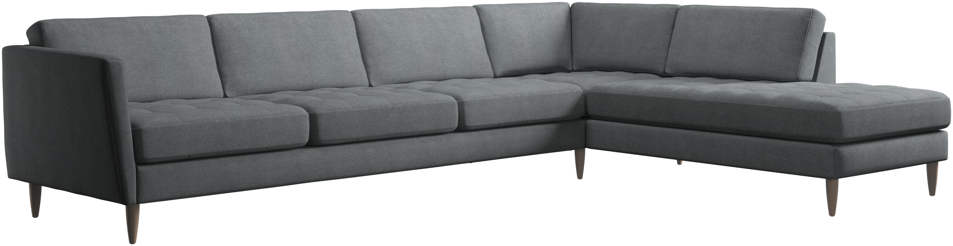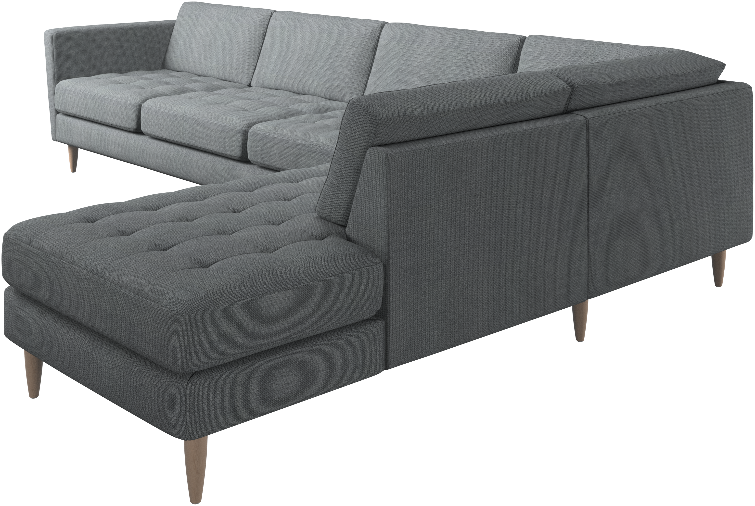 A light look and slim proportions make the Osaka sofa perfect for small homes, while a subtle feminine look and a touch of 60s design ensure that the Osaka sofa still packs a style punch. The beautiful tufted seats add visual softness and bring a classic look to your living room. Inclined armrests give the sofa a modern, unique look and open it up to the rest of the room. With plenty of room for the entire family this corner sofa will be the hero of your living room. The open end will create a dynamic, welcoming atmosphere - a true blessing for the integrated areas of open-plan living. Put your feet up, stretch out or use it as an extra seat – you won’t be sorry for choosing this comfortable chaise longue sofa.