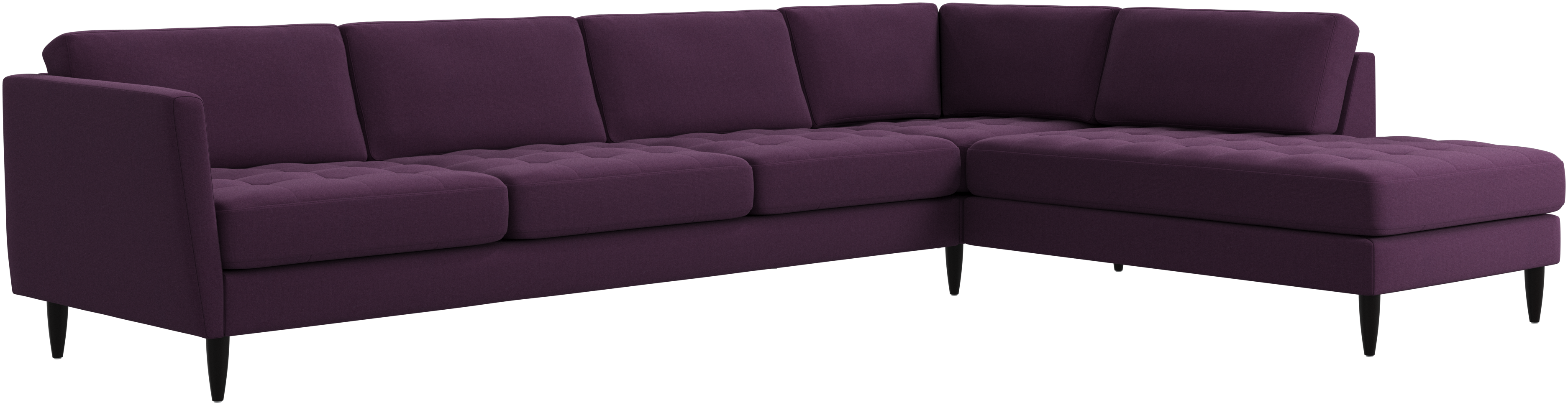 A light look and slim proportions make the Osaka sofa perfect for small homes, while a subtle feminine look and a touch of 60s design ensure that the Osaka sofa still packs a style punch. The beautiful tufted seats add visual softness and bring a classic look to your living room. Inclined armrests give the sofa a modern, unique look and open it up to the rest of the room. With plenty of room for the entire family this corner sofa will be the hero of your living room. The open end will create a dynamic, welcoming atmosphere - a true blessing for the integrated areas of open-plan living. Put your feet up, stretch out or use it as an extra seat – you won’t be sorry for choosing this comfortable chaise longue sofa.