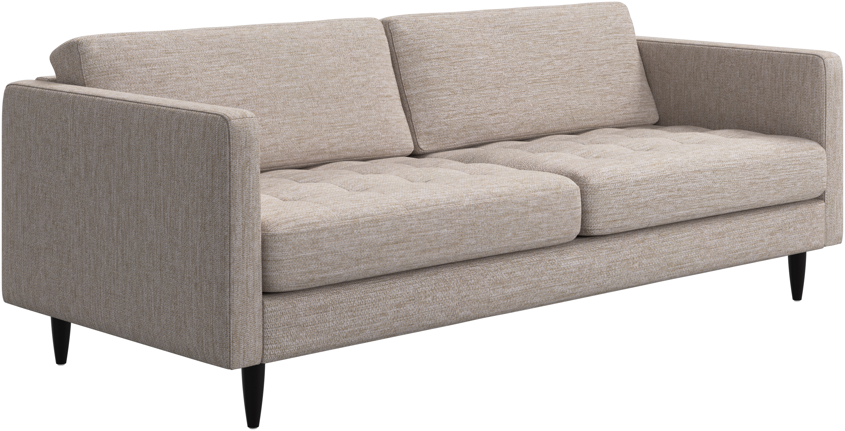 A light look and slim proportions make the Osaka sofa perfect for small homes, while a subtle feminine look and a touch of 60s design ensure that the Osaka sofa still packs a style punch. The beautiful tufted seats add visual softness and bring a classic look to your living room. The classic, straight armrests emphasise the clean lines and Scandinavian look. While keeping the 2 seater look, this comfortable 2.5 seater sofa has wider seats for extra comfort.
