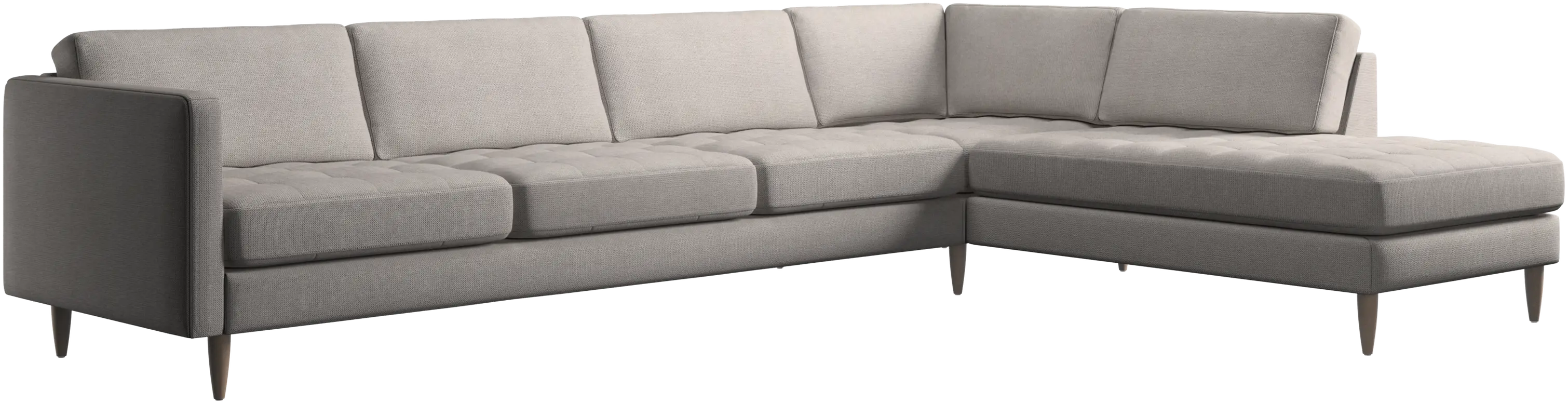 A light look and slim proportions make the Osaka sofa perfect for small homes, while a subtle feminine look and a touch of 60s design ensure that the Osaka sofa still packs a style punch. The beautiful tufted seats add visual softness and bring a classic look to your living room. The classic, straight armrests emphasise the clean lines and Scandinavian look. With plenty of room for the entire family this corner sofa will be the hero of your living room. The open end will create a dynamic, welcoming atmosphere - a true blessing for the integrated areas of open-plan living. Put your feet up, stretch out or use it as an extra seat – you won’t be sorry for choosing this comfortable chaise longue sofa.