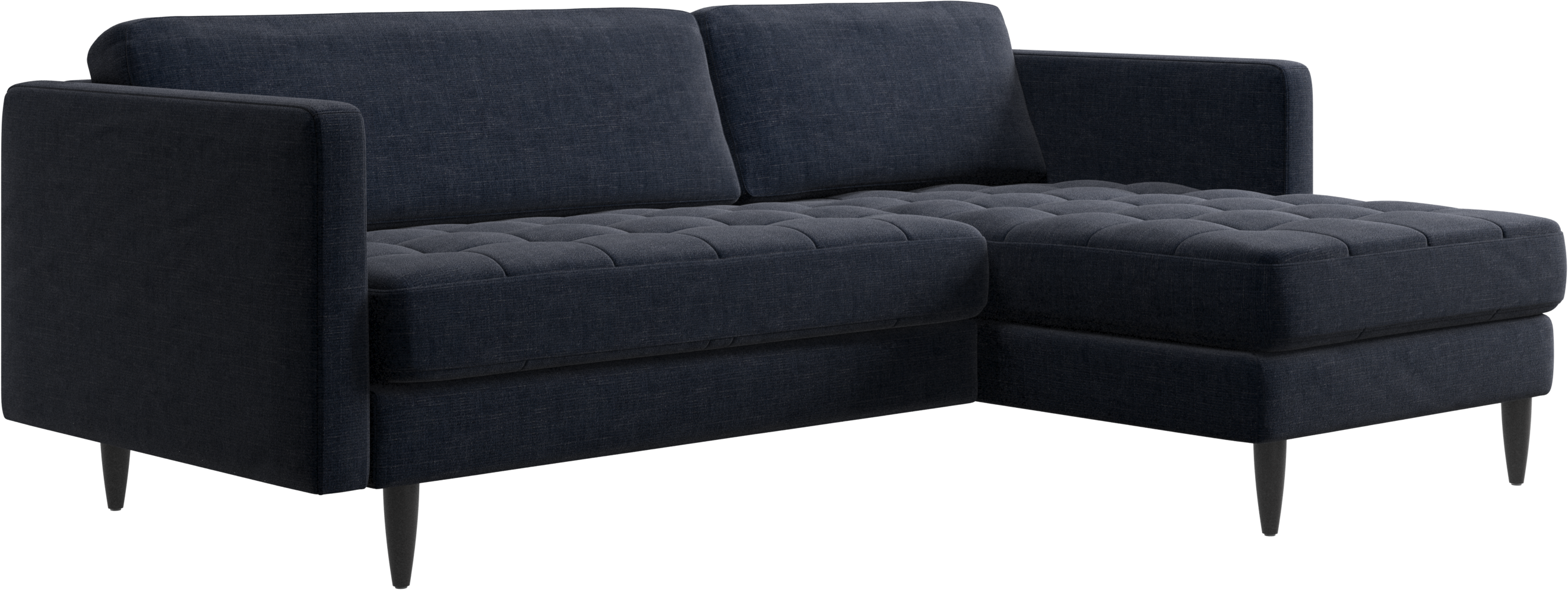 A light look and slim proportions make the Osaka sofa perfect for small homes, while a subtle feminine look and a touch of 60s design ensure that the Osaka sofa still packs a style punch. The beautiful tufted seats add visual softness and bring a classic look to your living room. The classic, straight armrests emphasise the clean lines and Scandinavian look. Put your feet up, stretch out or use it as an extra seat – you won’t be sorry for choosing this comfortable chaise longue sofa.