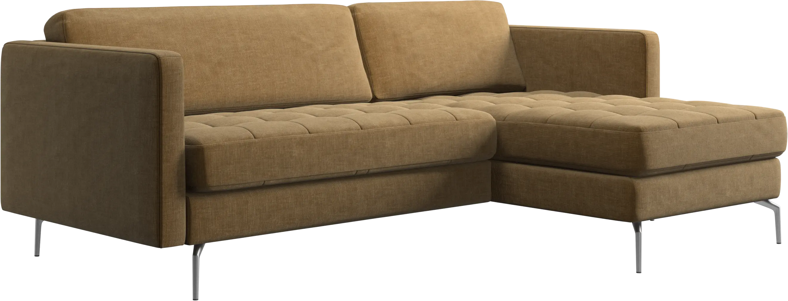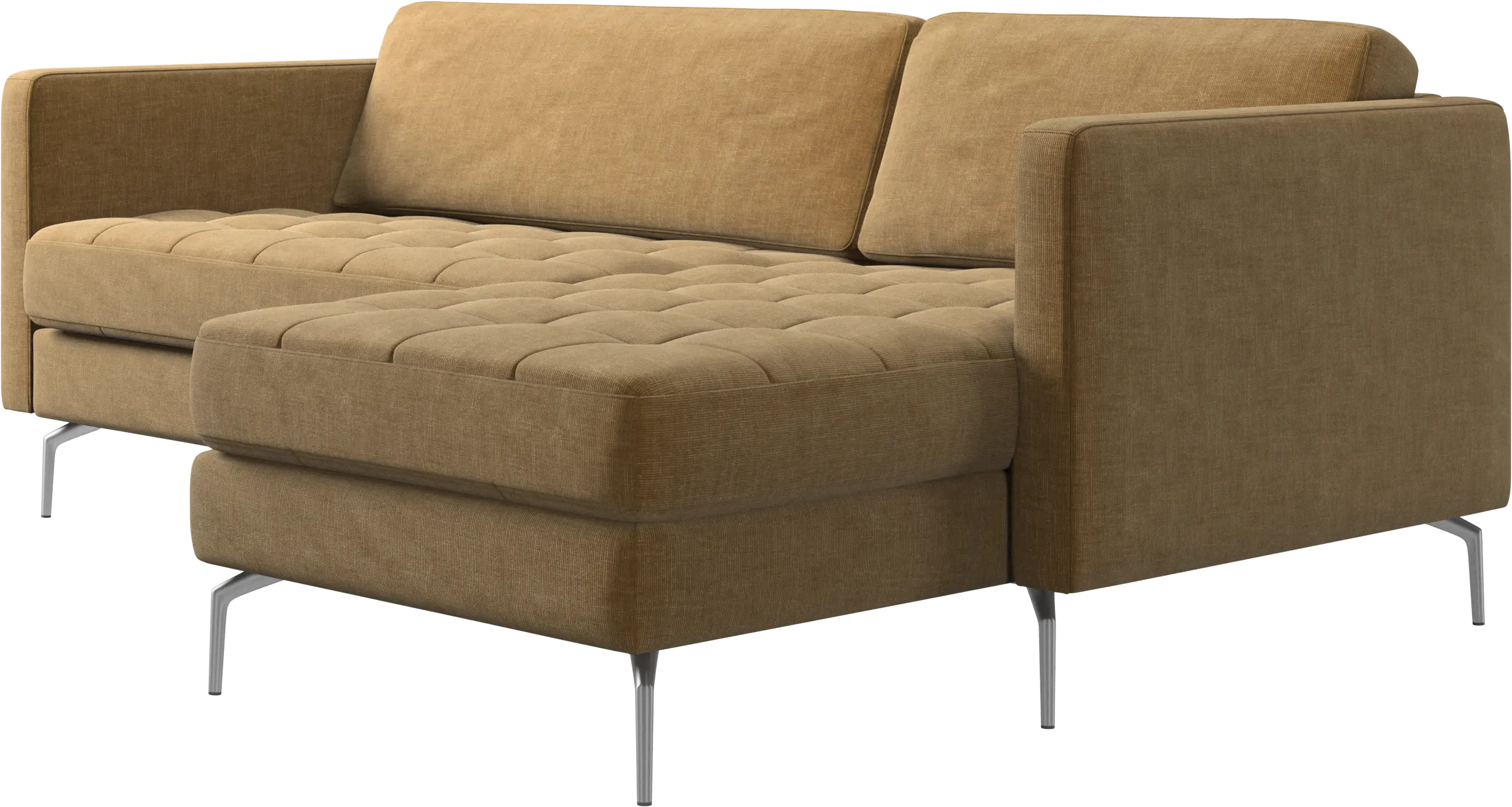 A light look and slim proportions make the Osaka sofa perfect for small homes, while a subtle feminine look and a touch of 60s design ensure that the Osaka sofa still packs a style punch. The beautiful tufted seats add visual softness and bring a classic look to your living room. The classic, straight armrests emphasise the clean lines and Scandinavian look. Put your feet up, stretch out or use it as an extra seat – you won’t be sorry for choosing this comfortable chaise longue sofa.