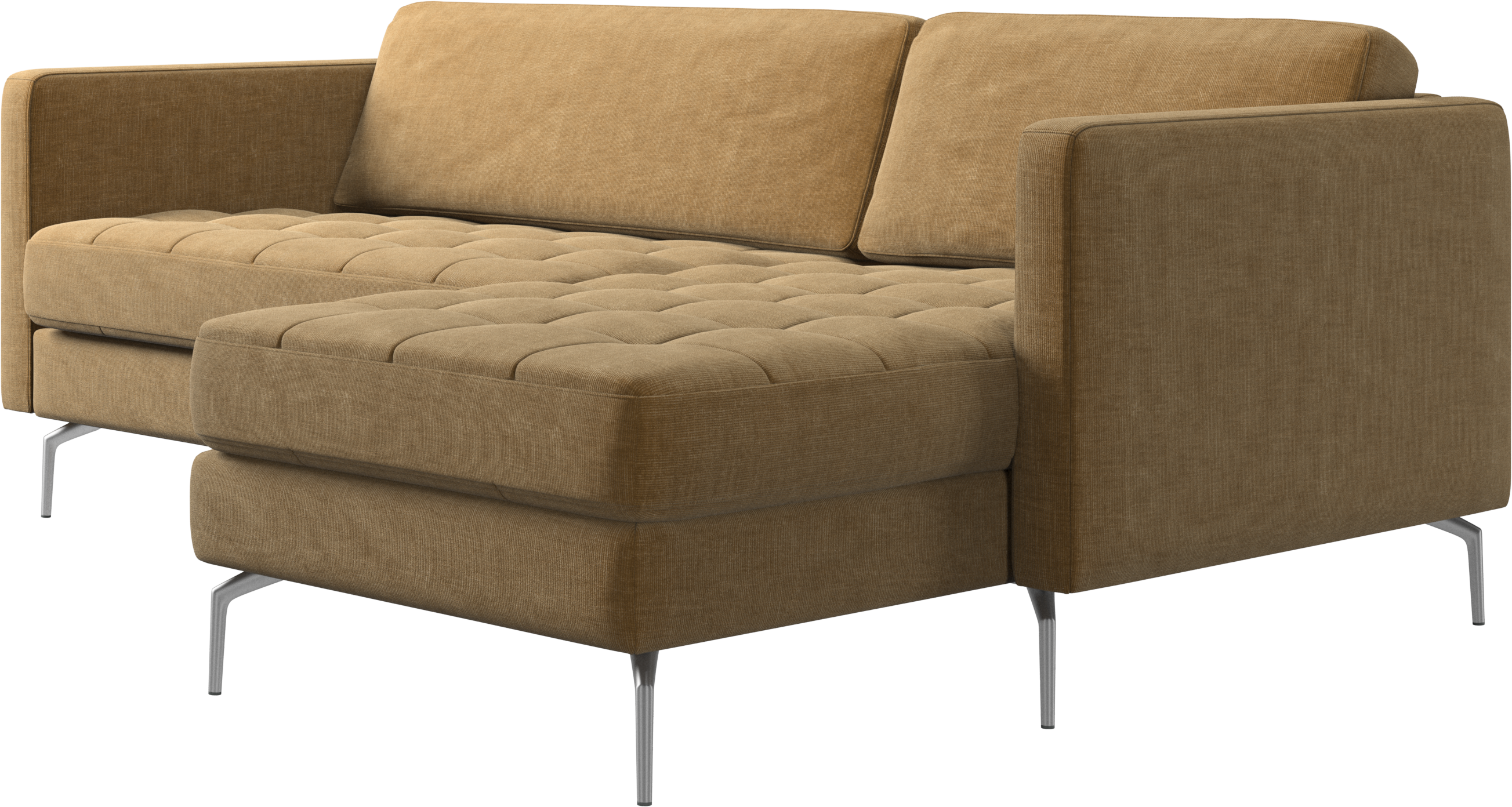 A light look and slim proportions make the Osaka sofa perfect for small homes, while a subtle feminine look and a touch of 60s design ensure that the Osaka sofa still packs a style punch. The beautiful tufted seats add visual softness and bring a classic look to your living room. The classic, straight armrests emphasise the clean lines and Scandinavian look. Put your feet up, stretch out or use it as an extra seat – you won’t be sorry for choosing this comfortable chaise longue sofa.