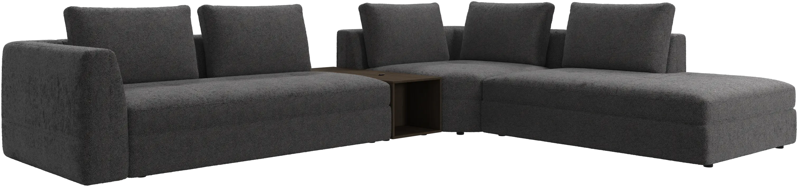 - Bergamo corner sofa with lounging unit and footstool w/storageFabric • Wood$15,690.00From $13,390.00
