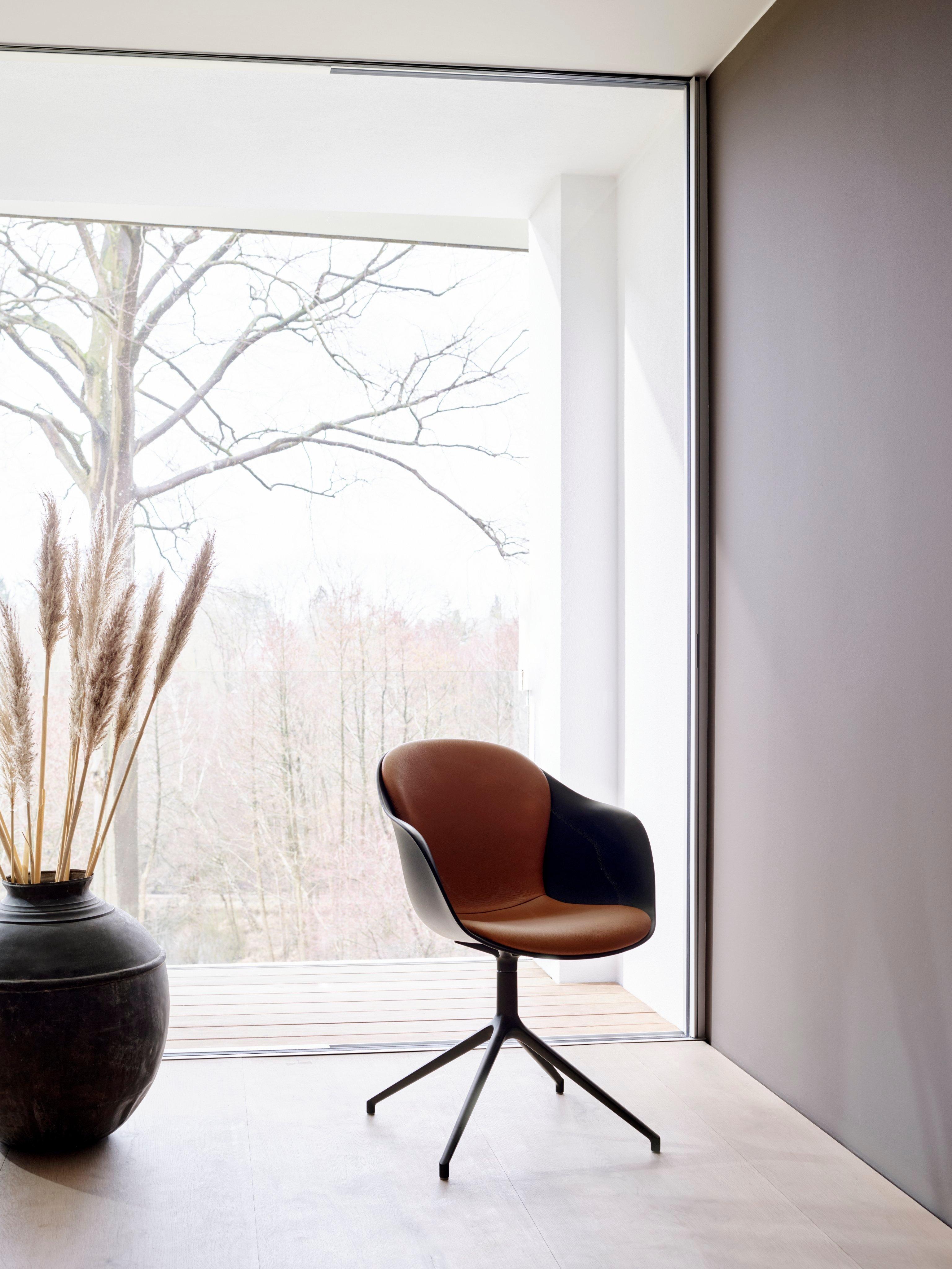 The iconic Adelaide chair is all about curves, comfort and character. With a graceful, organic form and sublime comfort this modern chair will set an elegant tone in your home. The slender swivel base provides flexibility without compromising on the lines of the chair design. At the same time, the sculptured seat without upholstery highlights the clean lines and minimal form. Armrests that follow the shape of the seat add both comfort and a luxurious atmosphere to your dining room.