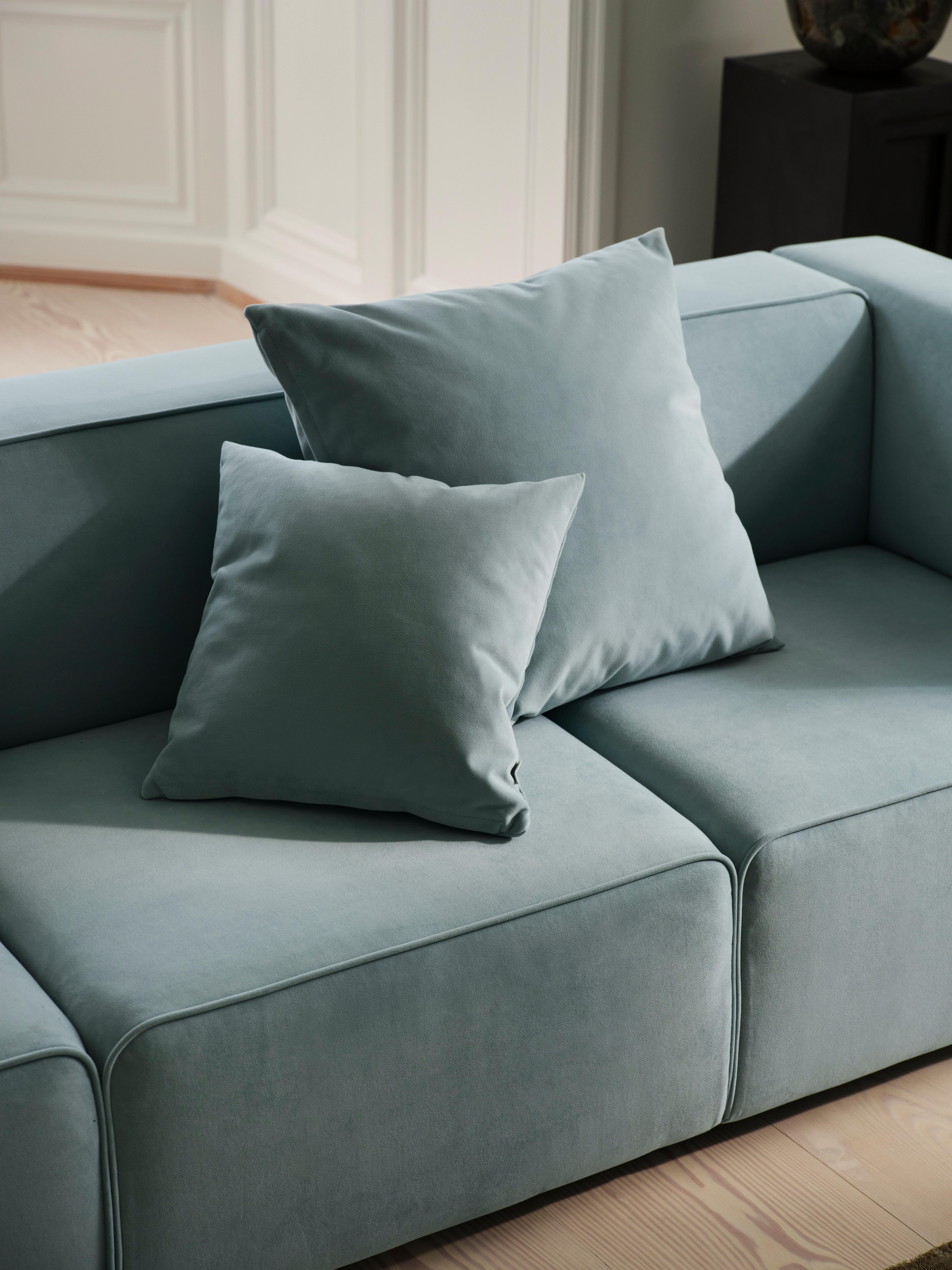 Catskills cushion in Bologna Velvet colours curated by Helena Christensen – Sky Blue and Mouse Belly – bring a refined, expressive touch to the collection. Soft, matte and tactile, they add calm depth to modern interiors.